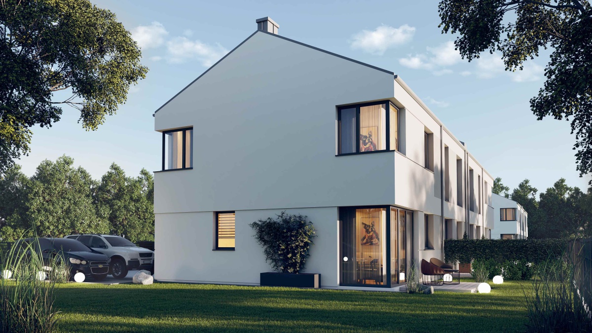 Domy środkowe zostaną wyposażone w urocze ogródki o powierzchni około 30m2, natomiast te na skrajnych parcelach będą cieszyć się przestrzenią od 270 do 280m2.