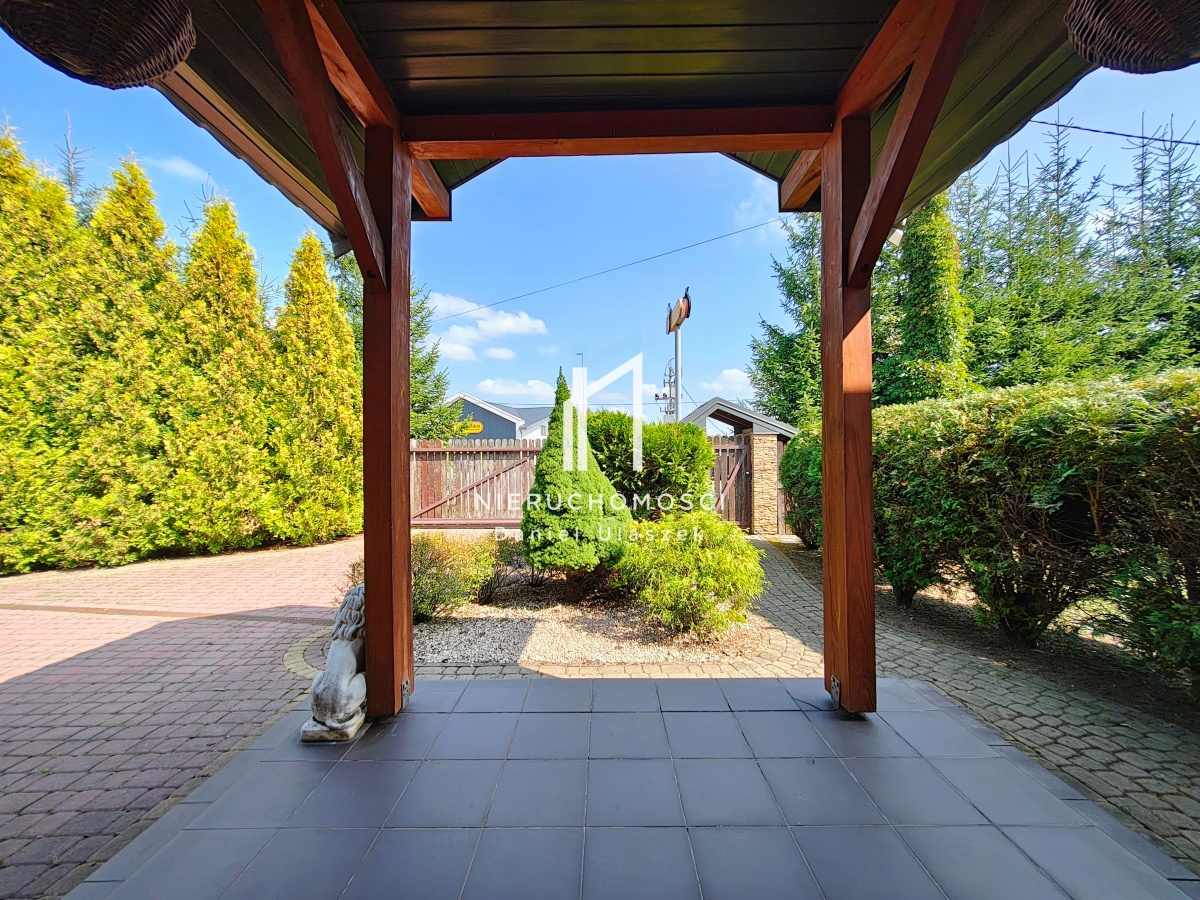 Na posesji znajduje się również wiata garażowa, pełniąca funkcję drugiego stanowiska postojowego.