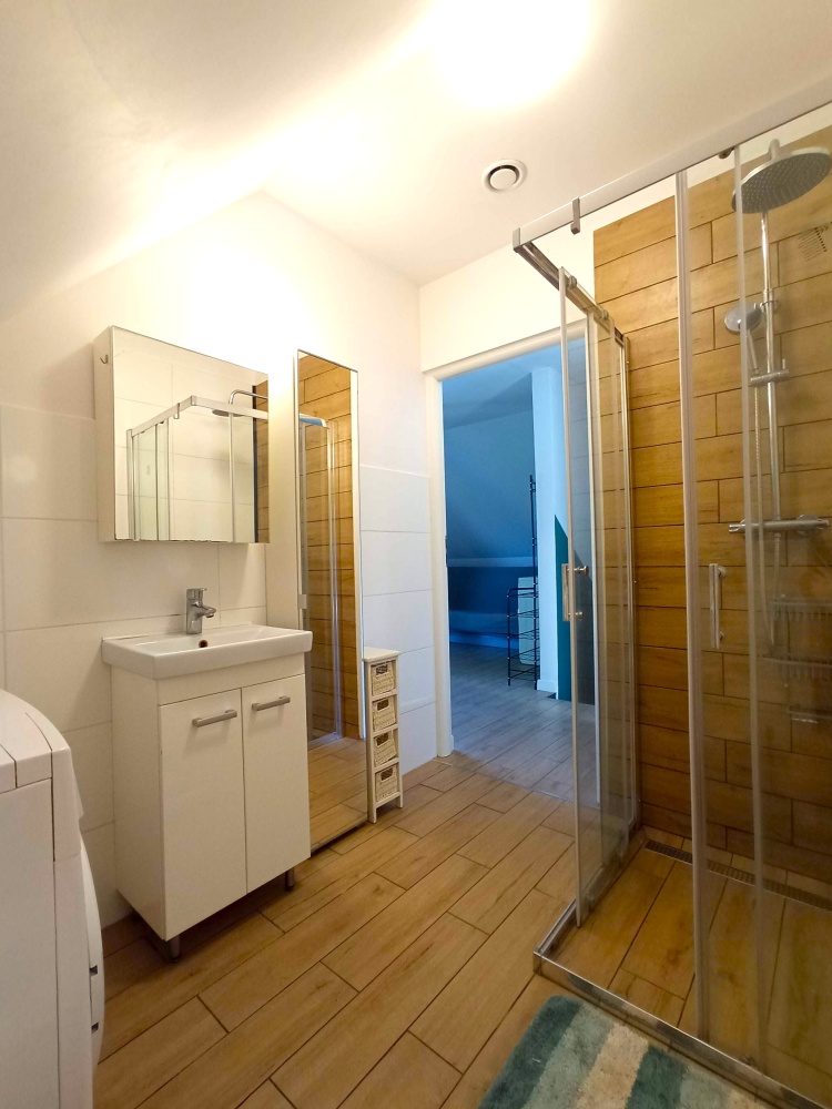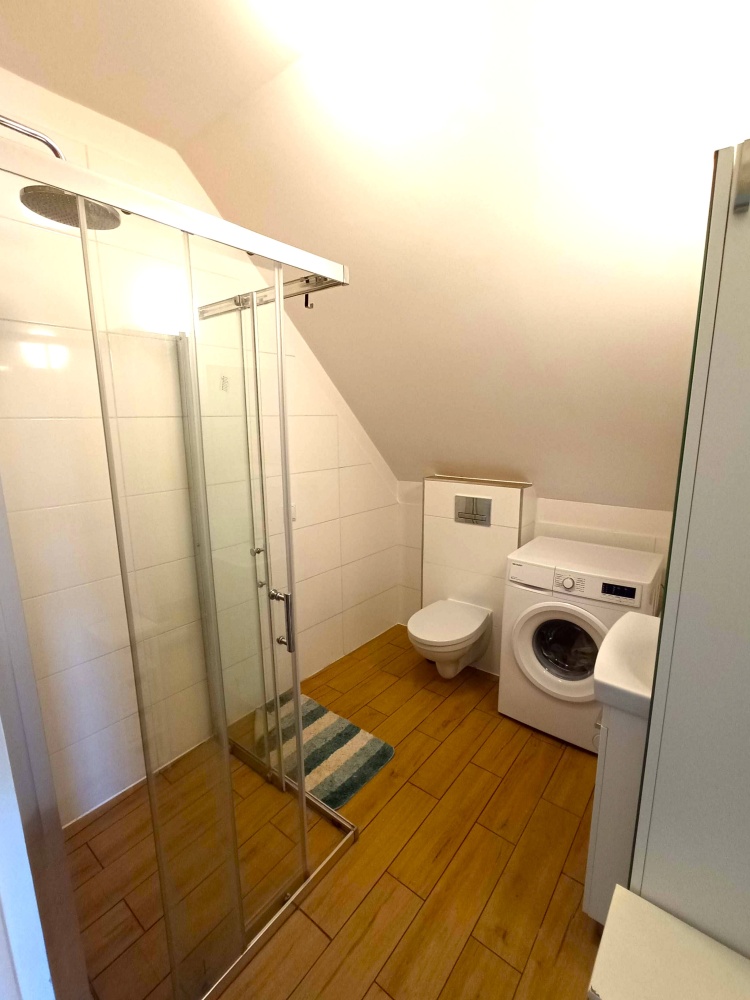 Na górze łazienka i 3 pokoje. Ponad piętrem strych.