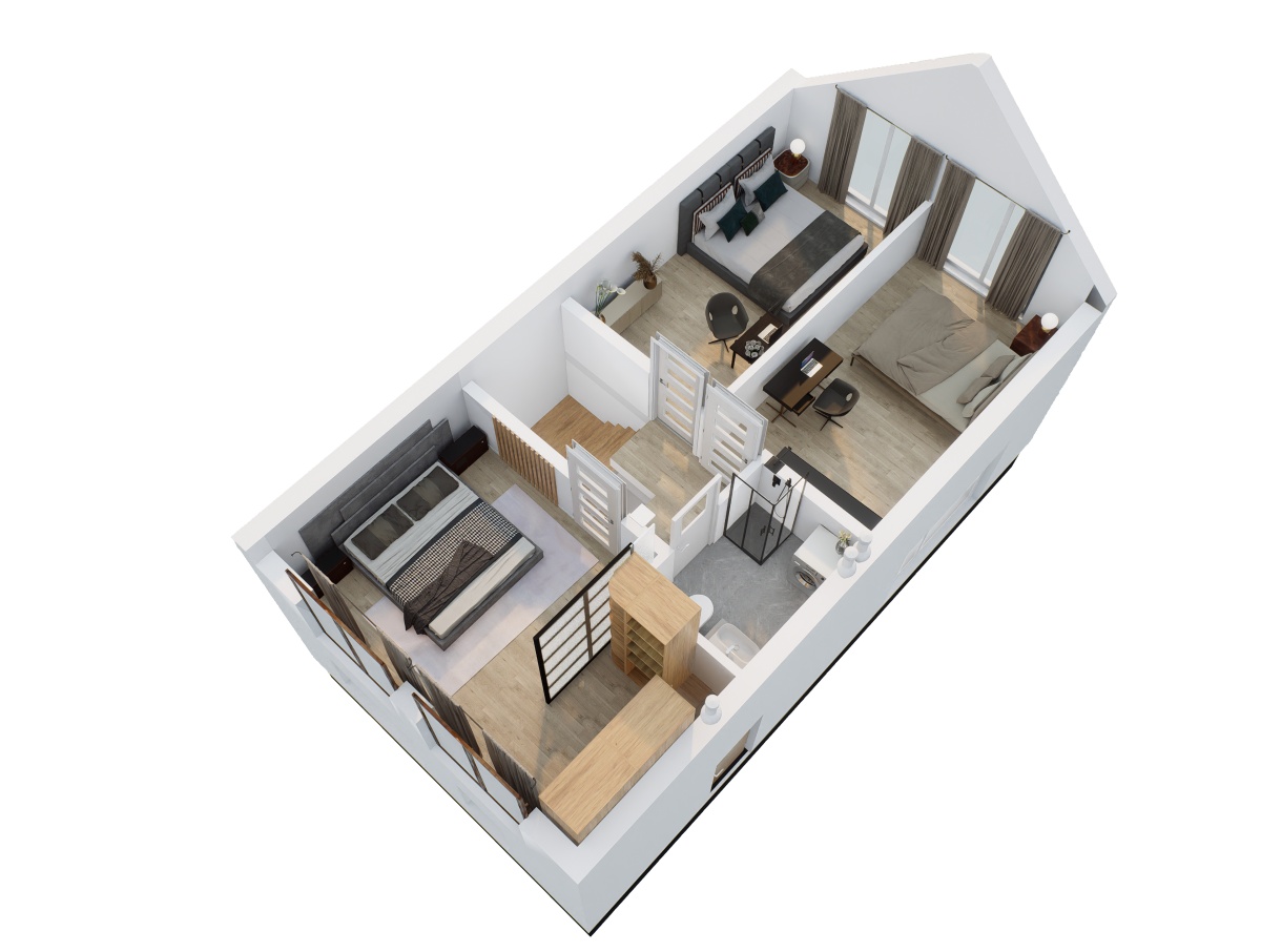 Każdy metr zaprojektowany z myślą o Twojej wygodzie. Otwarta strefa dzienna, w której toczy się życie rodzinne, prywatne sypialnie dające ciszę i spokój, a do tego mnóstwo miejsca na wspólne poranki, zabawę z dziećmi i wieczorne rozmowy przy stole.