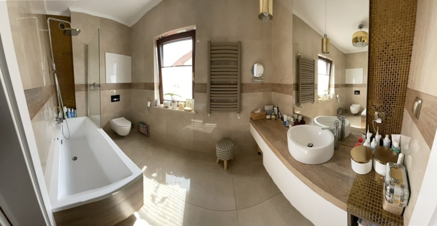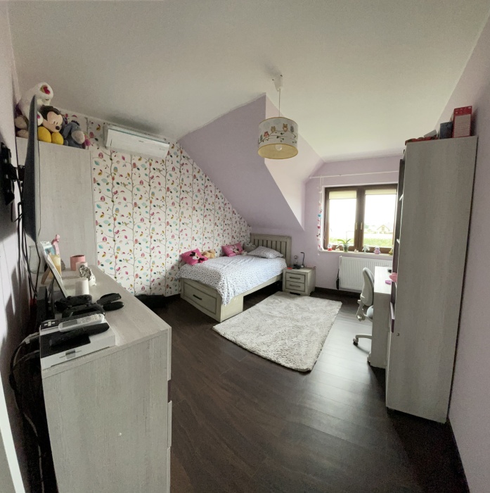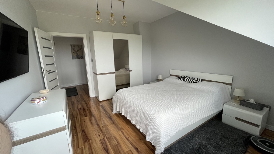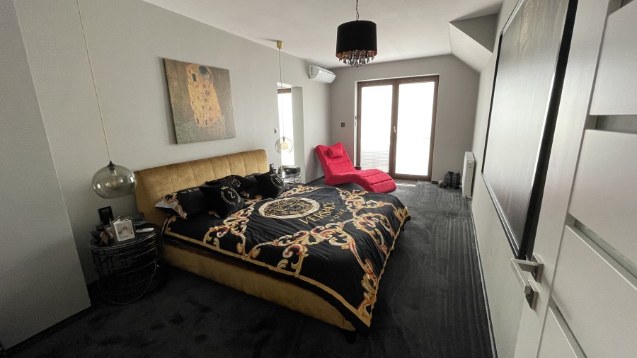 7 pokoi, z czego główna sypialnia posiada dodatkowo biokominek, wyjście na balkon, klimatyzacje z funkcją grzania oraz wentylacja i chłodzenia jak również luksusową garderobę w stylu glamour. W tej części znajdują się również 3 łazienki z czego jedna posiada dwa stanowiska oraz wannę z hydromasażem najwyższej generacji z funkcją Blutooth i wi-fi tak.