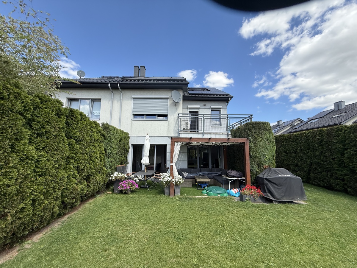 Dużym atutem jest zadbany ogród z drewnianą pergolą oraz nowym, automatycznym systemem nawadniania sterowanym przez Wi-Fi (Rainbird) oraz założonym w 2025 roku trawnikiem Dodatkowo wysokie tuje zapewniające prywatność. Południowo - zachodnia ekspozycja salonu i ogrodu - nasłonecznienie przez cały dzień.