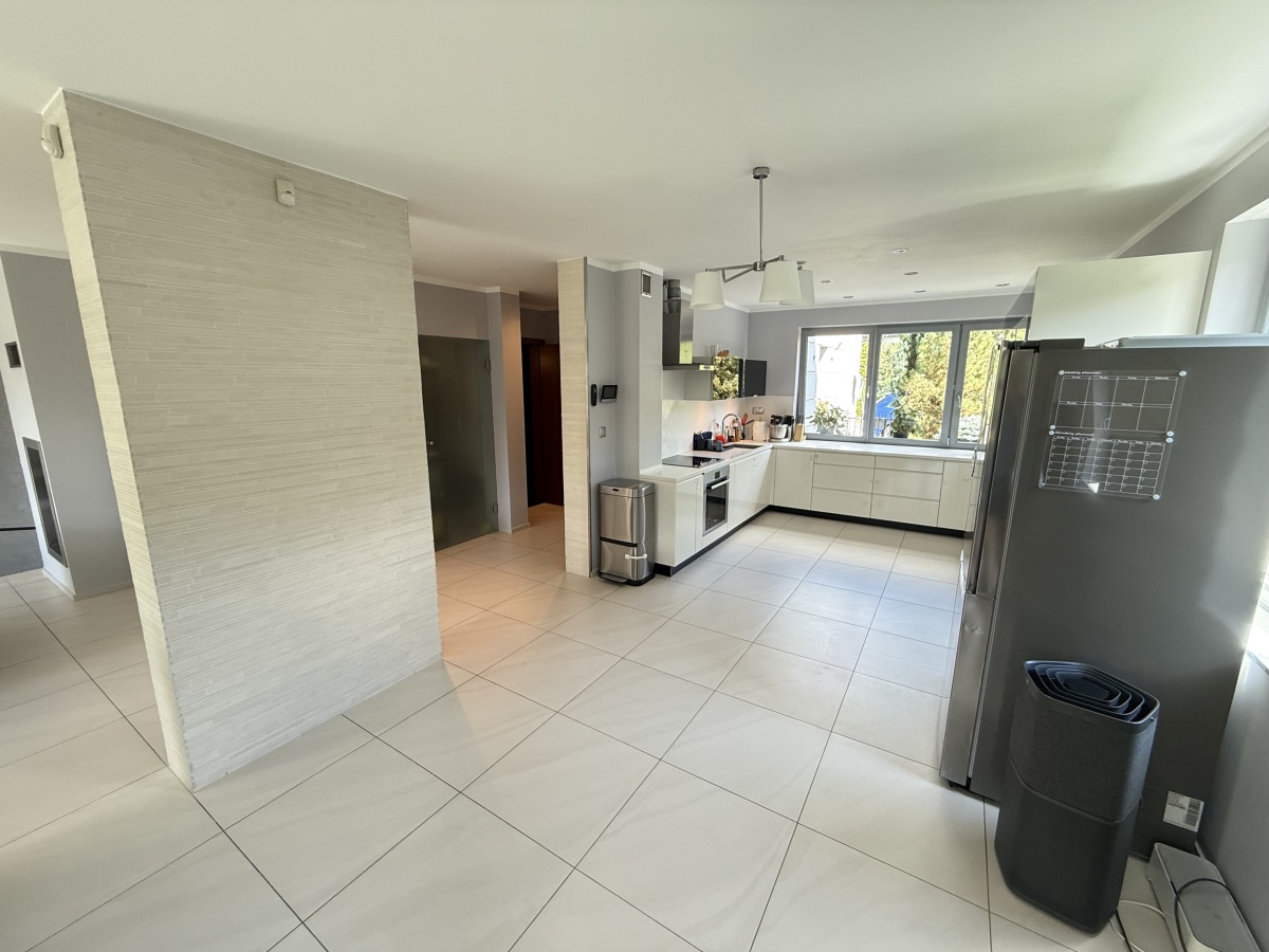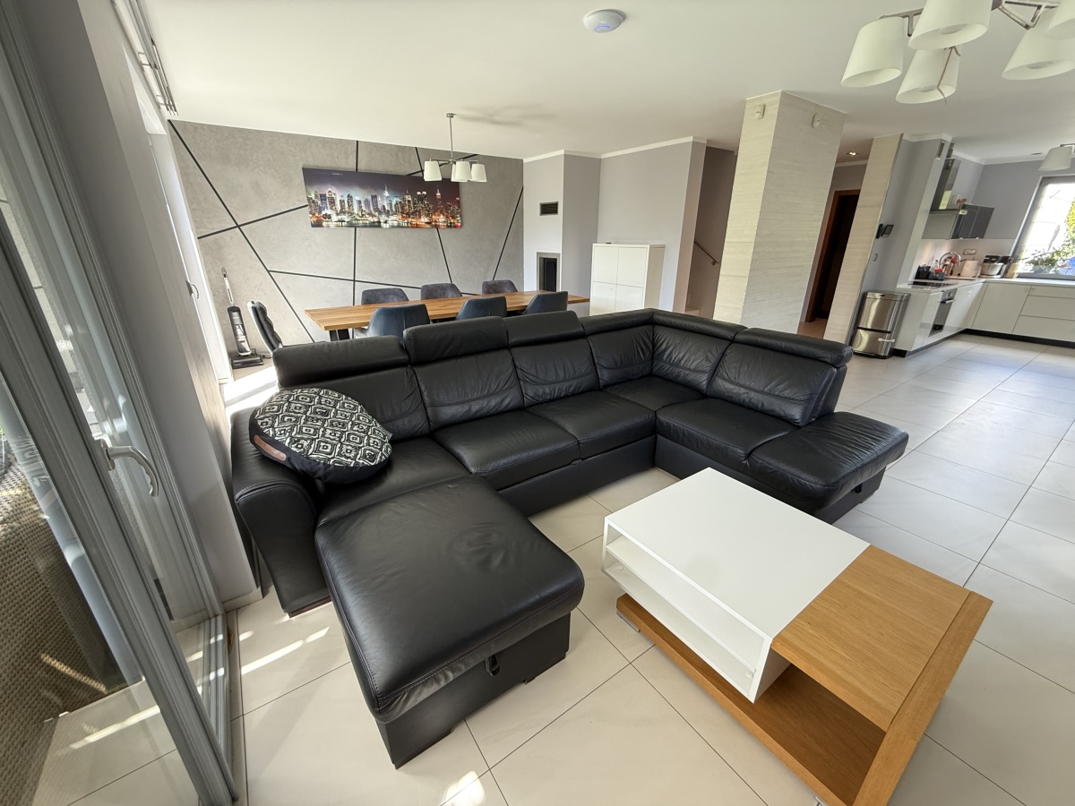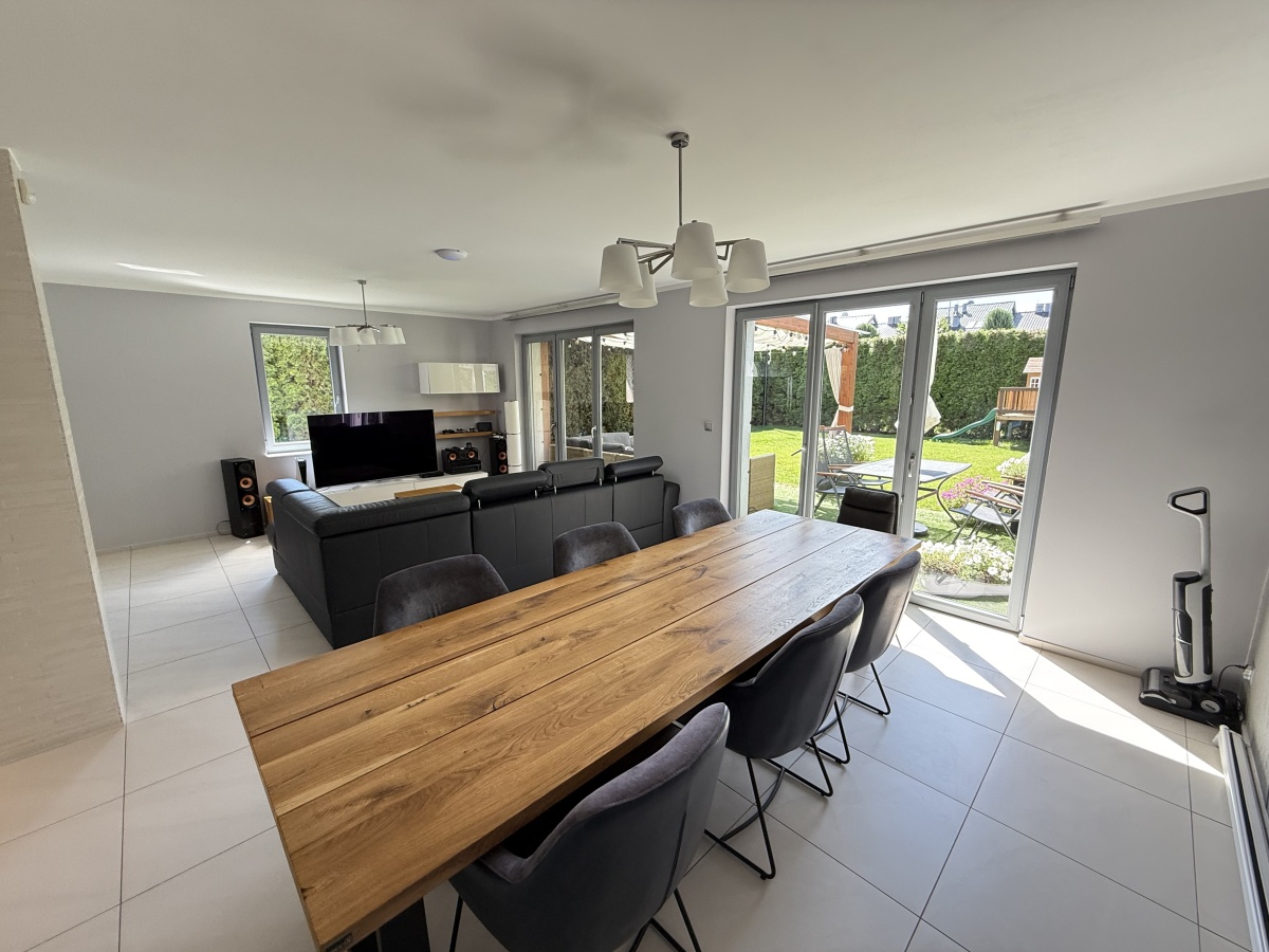 Dom wyróżnia się wysoką jakością wykończenia i nowoczesnym designem. W 2025 roku odświeżono wnętrza – pomalowany parter, piętro oraz klatka schodowa. W całym domu działa bezprzewodowy internet Wi-Fi oparty na architekturze UniFi (5 punktów dostępu Ubiquiti U7 PRO), a monitoring zarówno zewnętrzny jak i wewnątrz zapewnia bezpieczeństwo domowników.