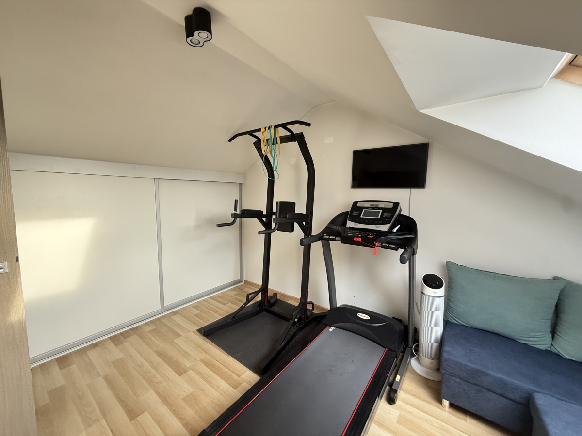 Poddasze (26,73 m²): klimatyzowany gabinet , pralnia oraz dodatkowy pokój (obecnie siłownia) wraz z zabudowaną szafą - idealna do przechowywania artykułów sezonowych.