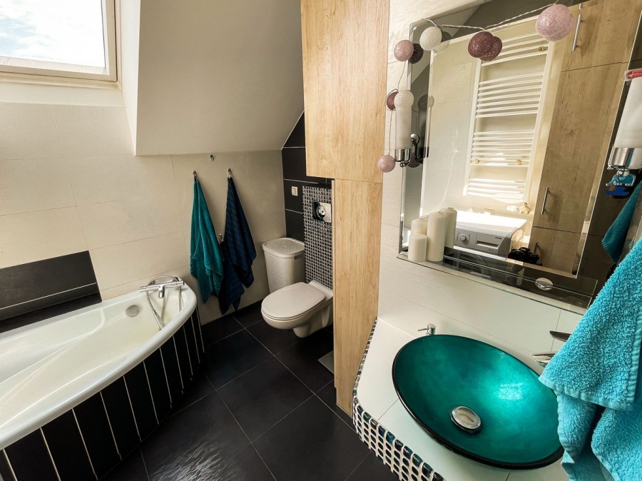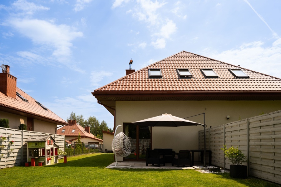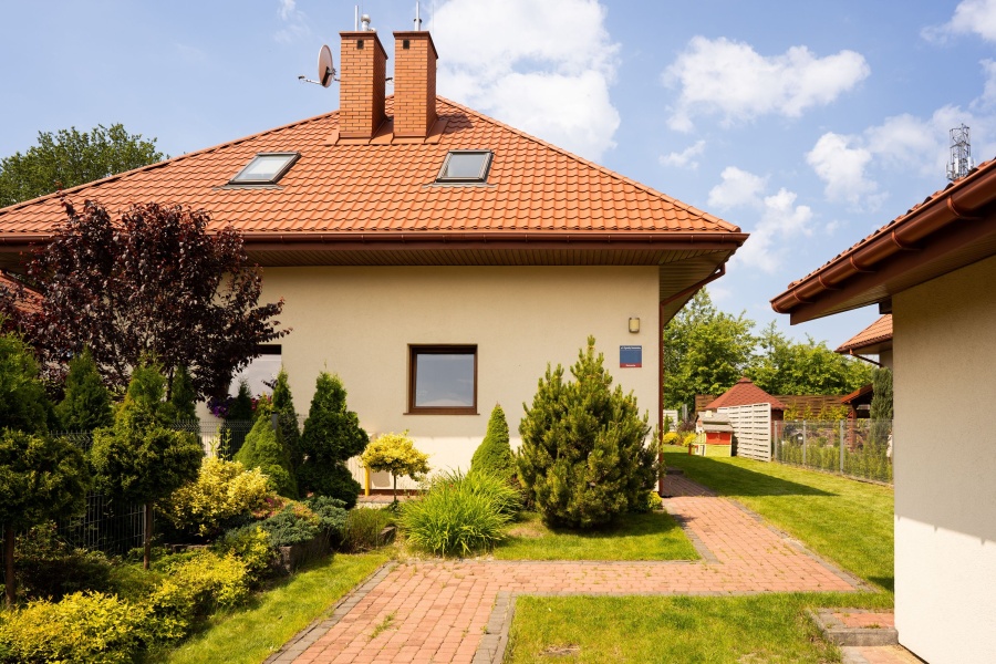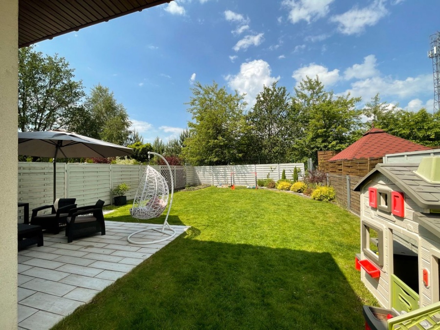 Dodatkowo dom posiada piękny ogród z dużym tarasem na którym zmieści się zarówno stół do wspólnego biesiadowania jak i miejsce do wypoczynku. W ogrodzie znajdują się piękne, zielone i kwitnące rośliny oraz mały warzywniak i zielnik. Ogród wyposażony jest w automatyczne nawadnianie, siatkę na krety i trawę z rolki.