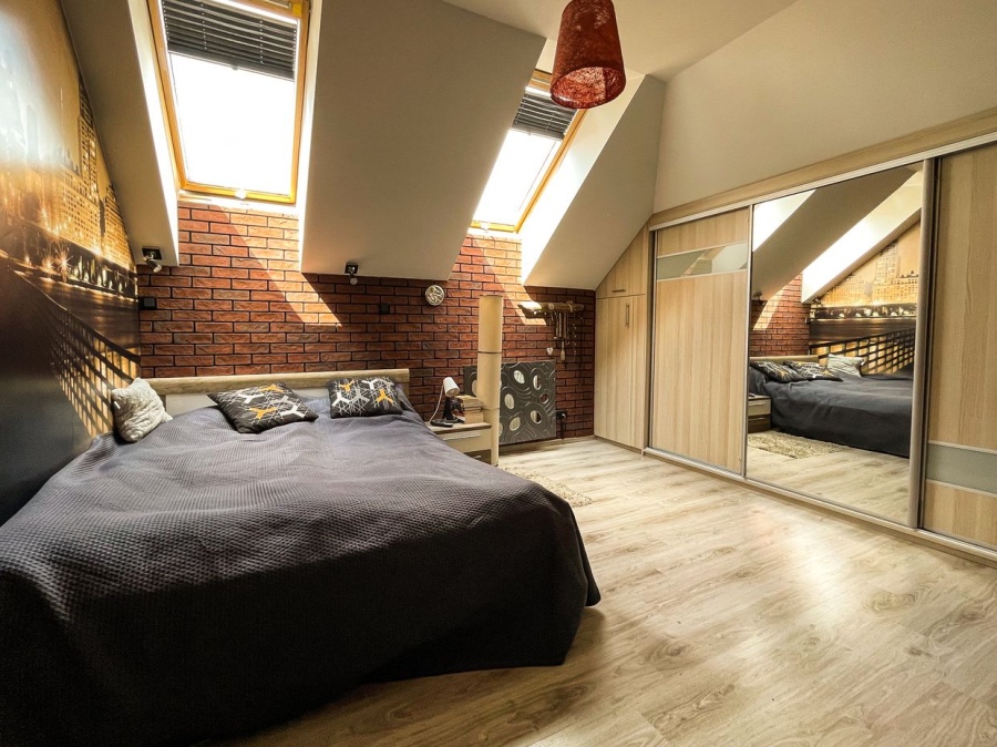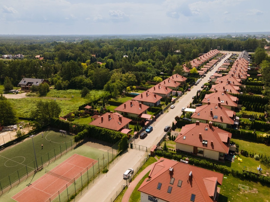 Piękne osiedle nowoczesnych domów w zabudowie bliźniaczej przy zamkniętej ulicy Ogrody Romanów w Łodzi. Budynek wykonany w tradycyjnej technologii murowanej, wyposażony w komplet mediów miejskich – prąd, gaz, woda, kanalizacja. Dom posiada przestronny parter z nowoczesnym salonem z kominkiem, jadalnię, otwartą kuchnię, łazienkę z prysznicem oraz pojemną spiżarnię. Na poddaszu usytuowano dodatkowo trzy sypialnie oraz łazienkę z wanną. Ponadto na najwyższej kondygnacji zlokalizowany jest strych. Na terenie posesji znajduje się wolnostojący garaż oraz dodatkowe miejsce parkingowe.