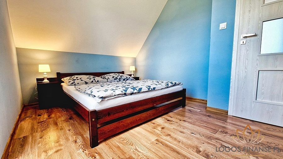 Przedmiotowa działka gruntu zabudowana (w stanie surowym otwartym) jest także drugim budynkiem, murowanym, dwukondygnacyjnym z poddaszem, niepodpiwniczonym, o powierzchni 600m2. Możliwa liczba apartamentów w pensjonacie wynosi 23 sztuk, np.