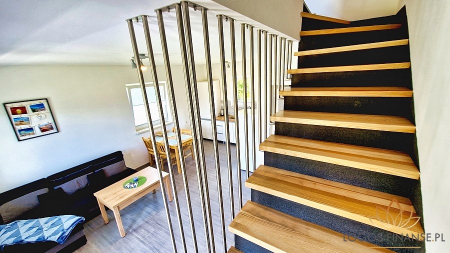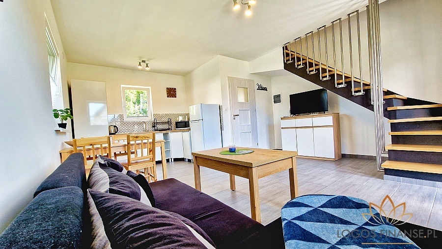 Domek składa się z przestronnego salonu z aneksem kuchennym, łazienki z WC i 2 sypialni. W każdym domku może jednocześnie nocować ok 7 osób.