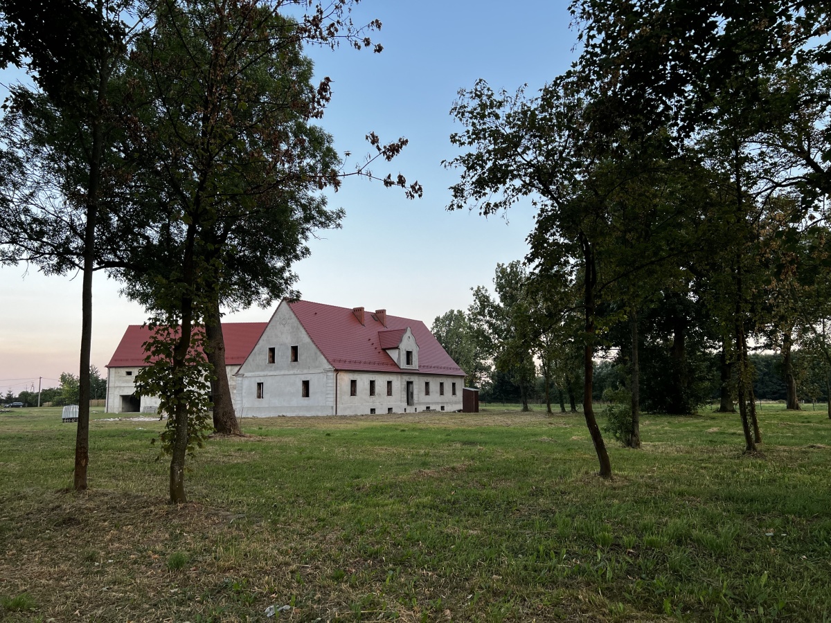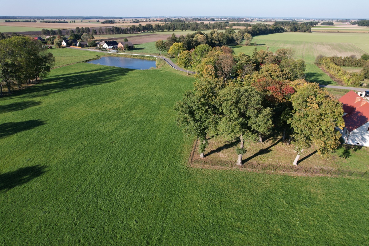 W skład nieruchomości wchodzą działki o łącznej powierzchni 2,18 ha (na tym terenie jest dworek z parkiem, spichlerzem oraz magazynem ok. 200 m2) teren jest ogrodzony nowym panelem ogrodzeniowym w kolorze czarnym. Działka posiada dwa bezpośrednie zjazdy z drogi asfaltowej, jest brama panelowa dwuskrzydłowa oraz główny wjazd posiada bramę stalową dwuskrzydłową).
