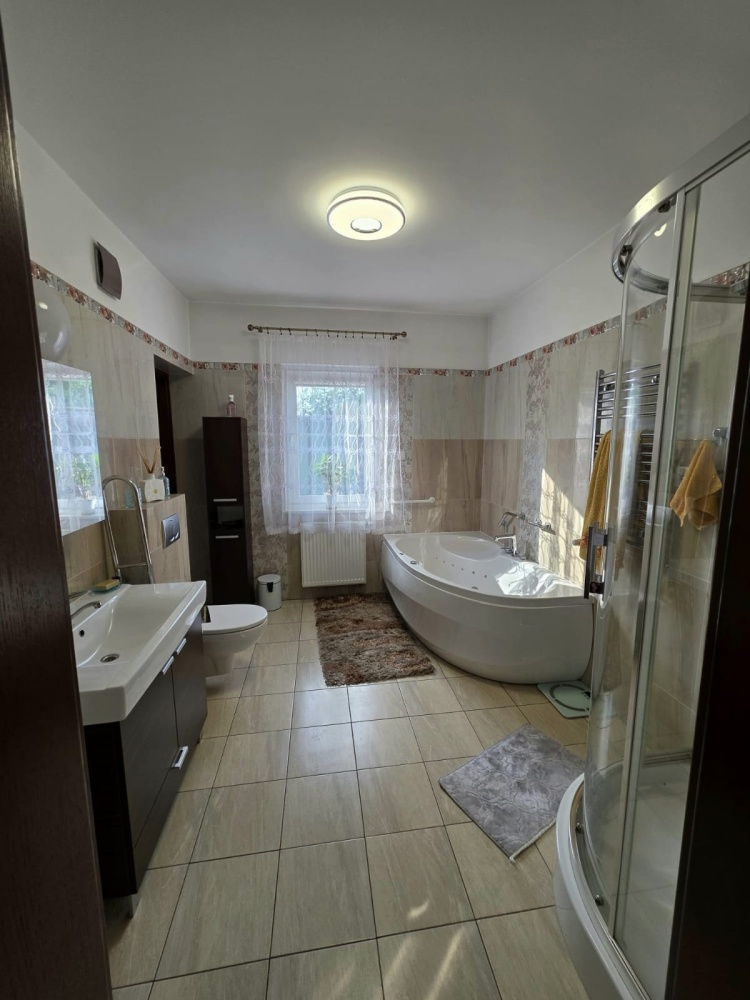 • przestronna łazienka z WC, pisuarem, kabiną prysznicową oraz wanną z hydromasażem,