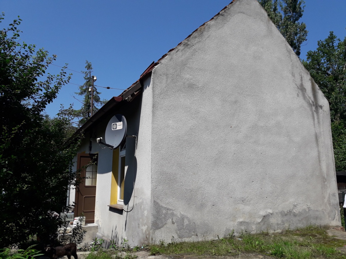 Na działce znajduje się przedwojenny budynek mieszkalny o powierzchni 36 m² (2 pokoje, w tym 1 z aneksem kuchennym, łazienka i komunikacja).