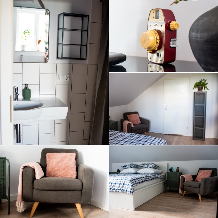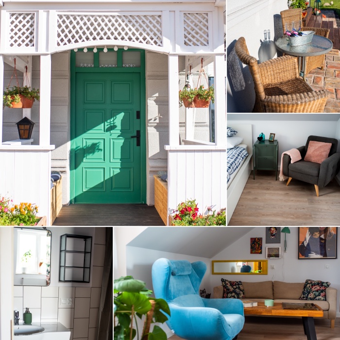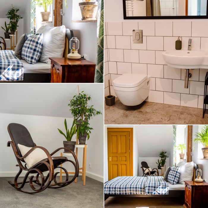 - cztery pokoje z łazienkami aktualnie jako pokoje gościnne do wynajęcia
