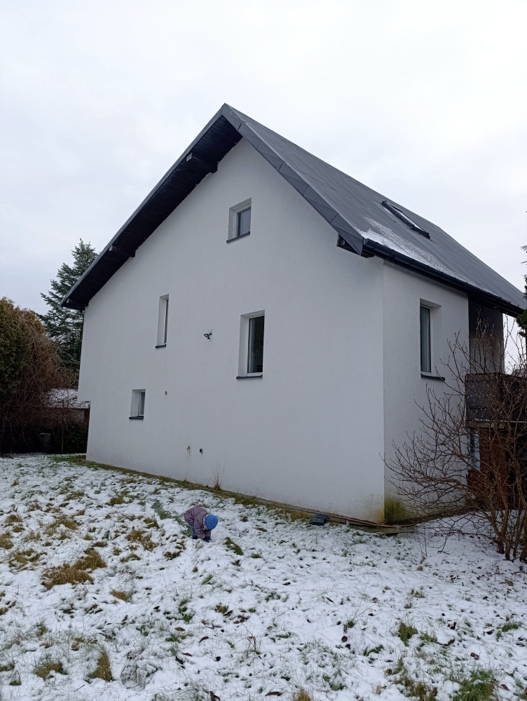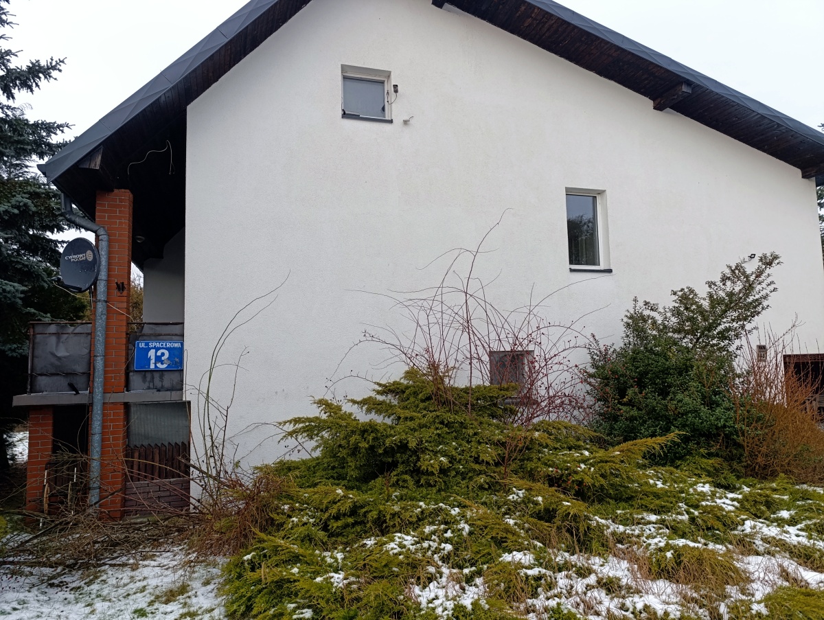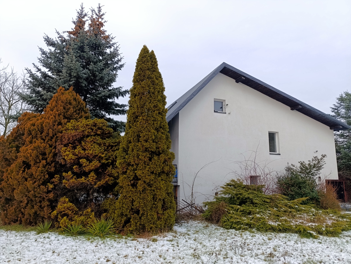 Budynek z 1998 roku o powierzchni użytkowej 110m2 składający się z małej łazienki na poziomie 0, pomieszczenia gospodarczego, salonu z aneksem kuchennym z wyjściem na taras, 3 pokojami sypialnymi oraz łazienką z prysznicem.