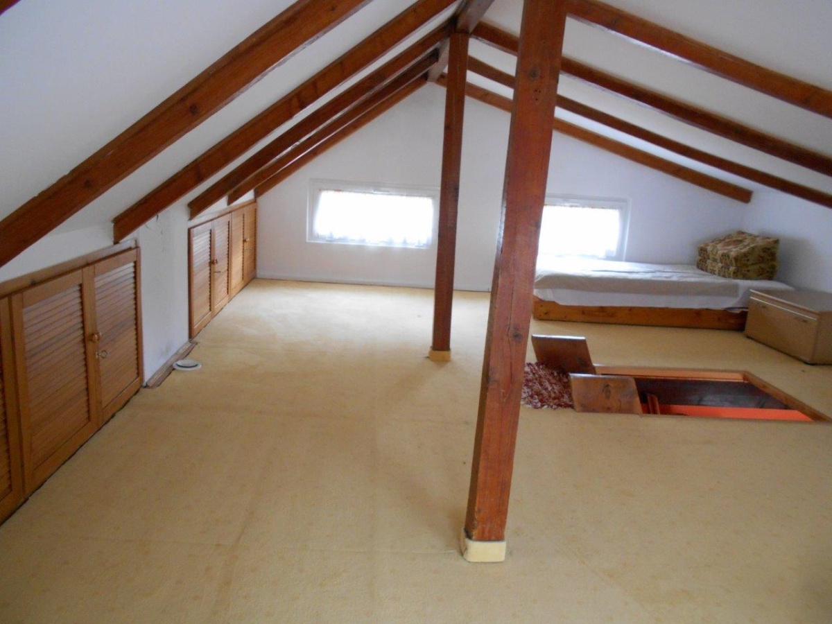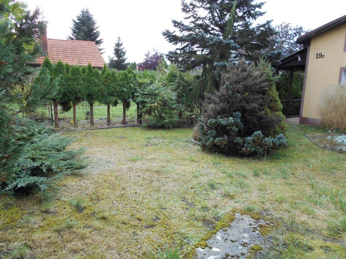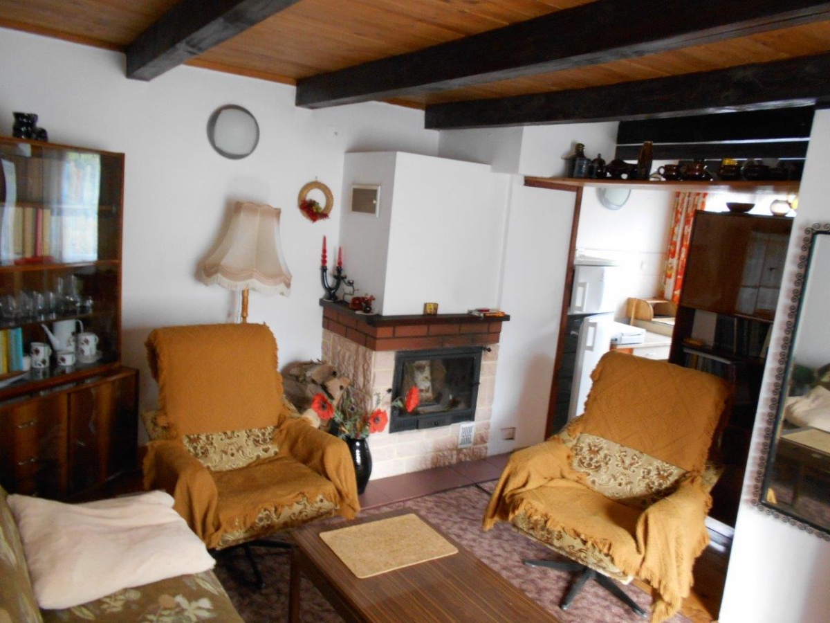Powierzchnia działki 340m2, domek dwupiętrowy. Na parterze pokój, kuchnia oraz łazienka, poddasze niskie, otwarte, z zabudową szafową i miejscami do spania.