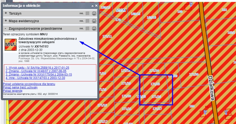 Plan zagospodarowania działek to zabudowa mieszkaniowa jednorodzinna.
