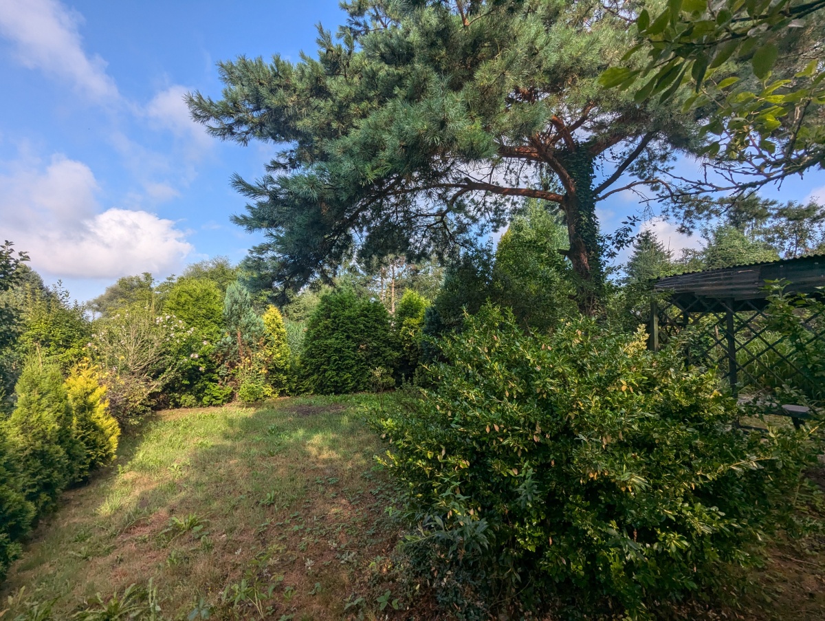 Ogród: Teren jest zagospodarowany – rosną na nim drzewka owocowe oraz ozdobne.