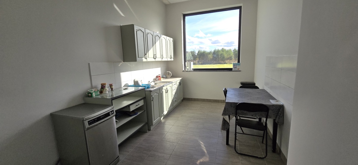 Posadzki w halach bezpyłowe przygotowane pod duże obciążenia. Hale z częścią socjalną i biurem na parterze wykończone . Stolarka okienna plastikowa z wejściem głównym, którego konstrukcja jest z aluminium. Parapety na całości granitowe. Budynek w części biurowej posiada duże przeszklenia oraz reprezentatywny obszerny hol co daje możliwość prowadzenia różnego rodzaju biznesu wymagającego np. ekspozycji czy poczekalni. Hol technicznie jest przygotowany pod wydzielenie biur. Pomieszczenia biurowe zostały pomalowane brak okładzin podłogowych i sufitów systemowych. Pozostała część inwestycji jest wykończona i gotowa do prowadzenia działalności.