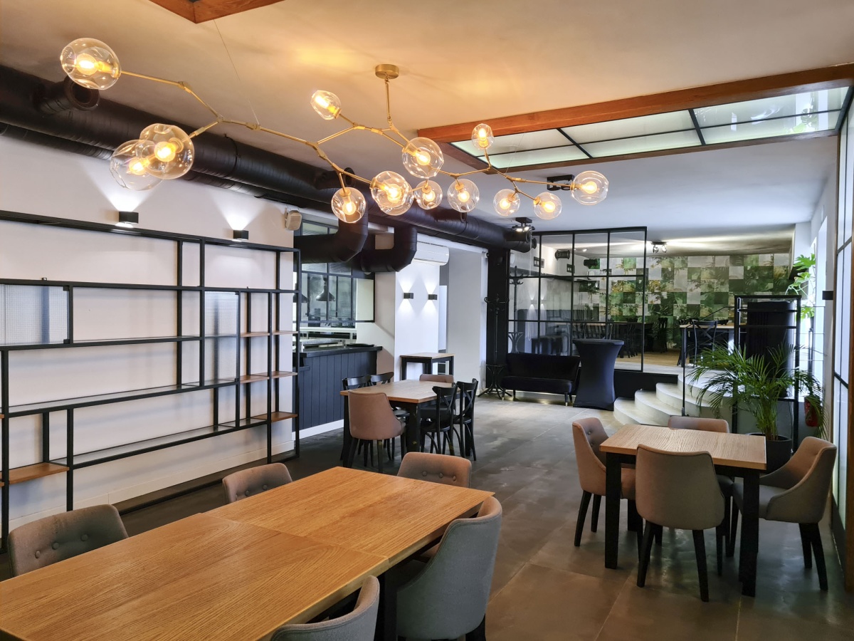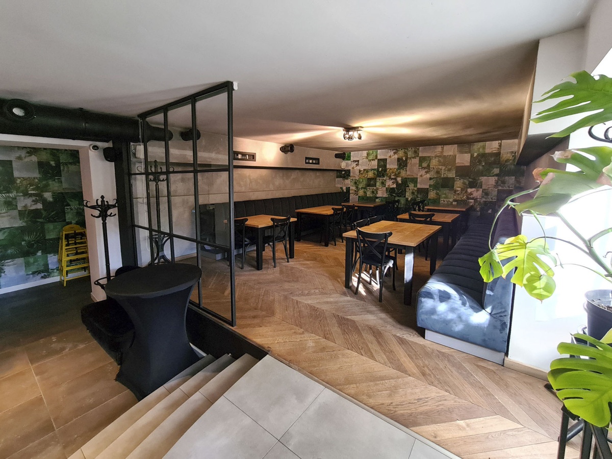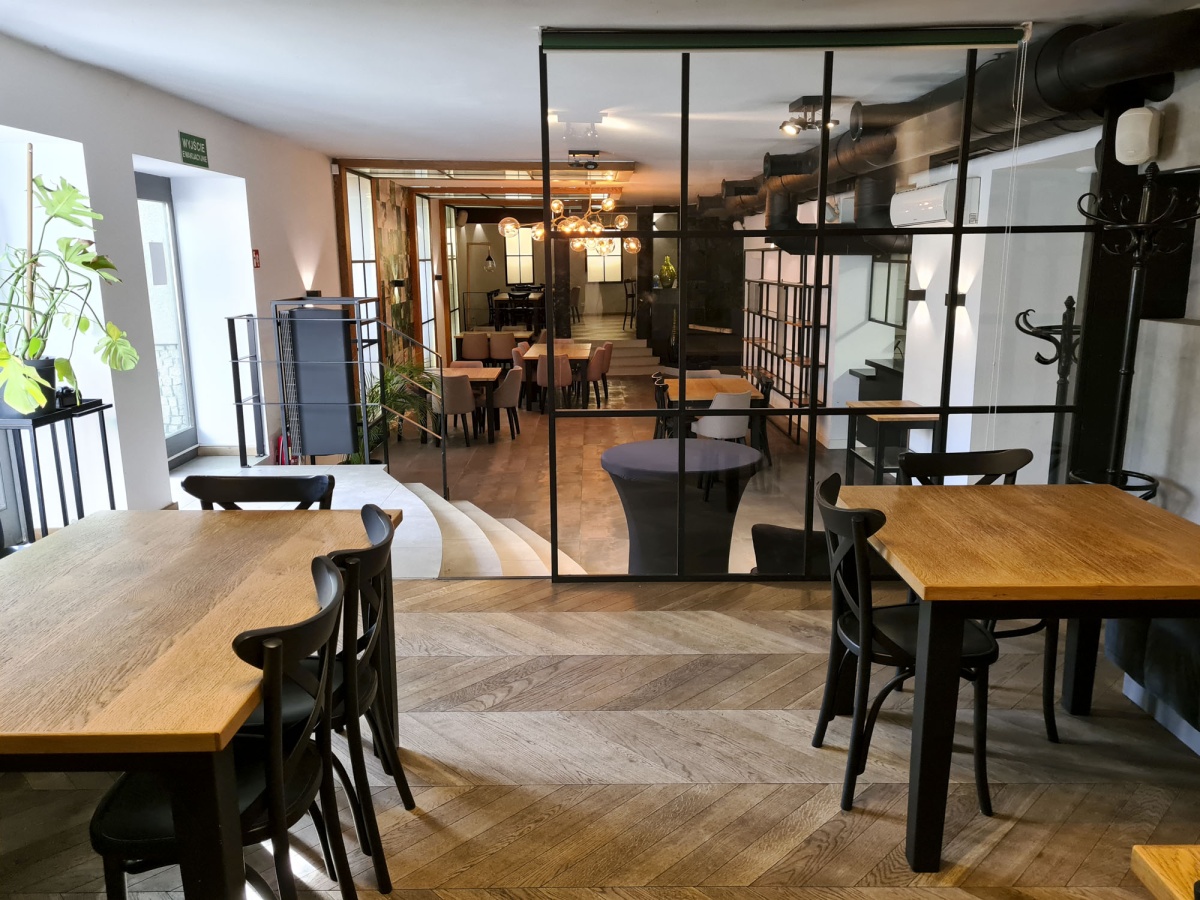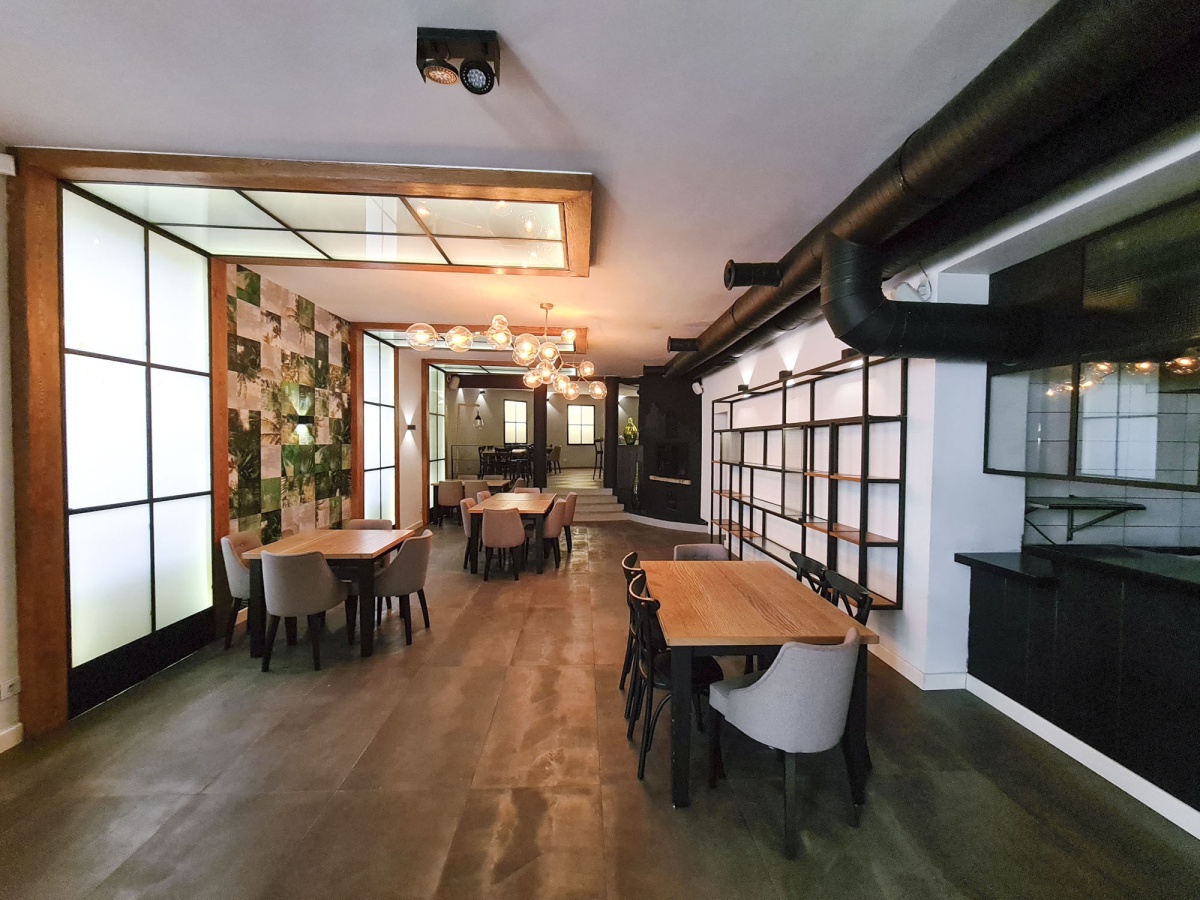 Klimatyzowana sala 157,46m2 z kominkiem, z barem, z możliwością podzielania na trzy strefy, toalety gości, zaplecze magazynowe i kelnerskie, kuchnia otwarta na restaurację. Możliwość zmiany przeznaczenia lokalu pod inne rodzaje działalności. CENA: 5400 zł/m2
