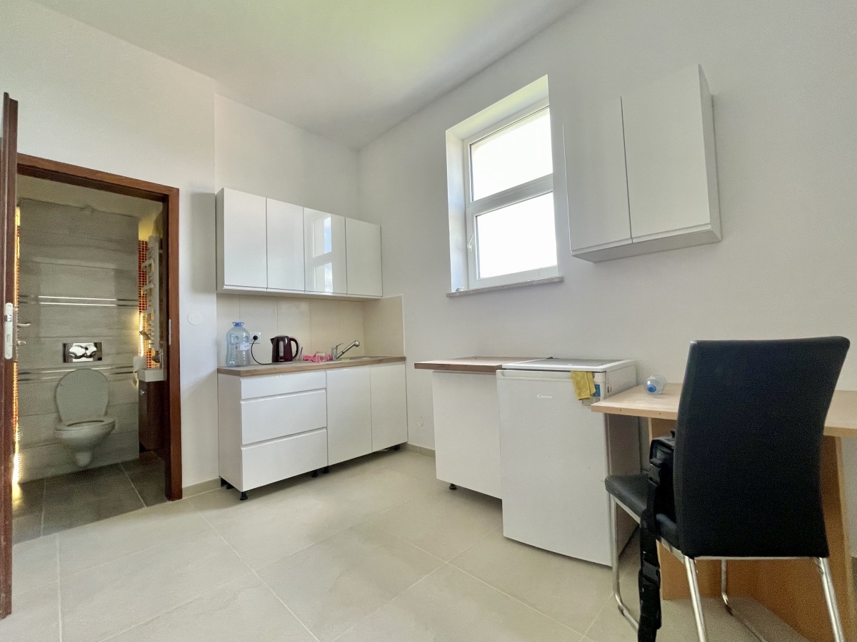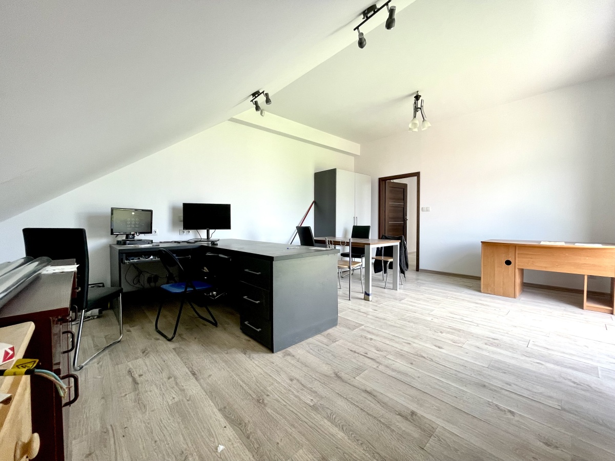Do lokalu przynależy również małe biuro już wykończone (20m2), aneks kuchenny, toaleta, strych (duża przestrzeń dodatkowa do przechowania rzeczy) oraz hol.