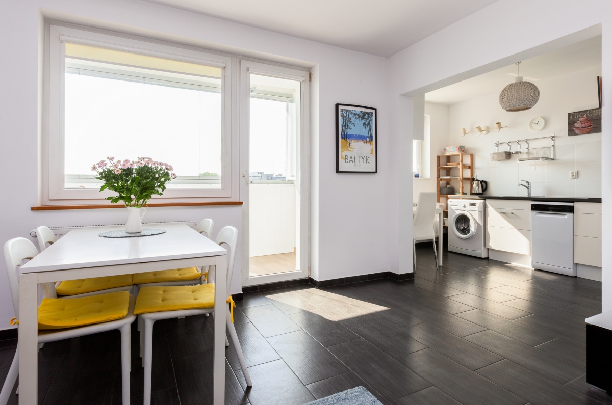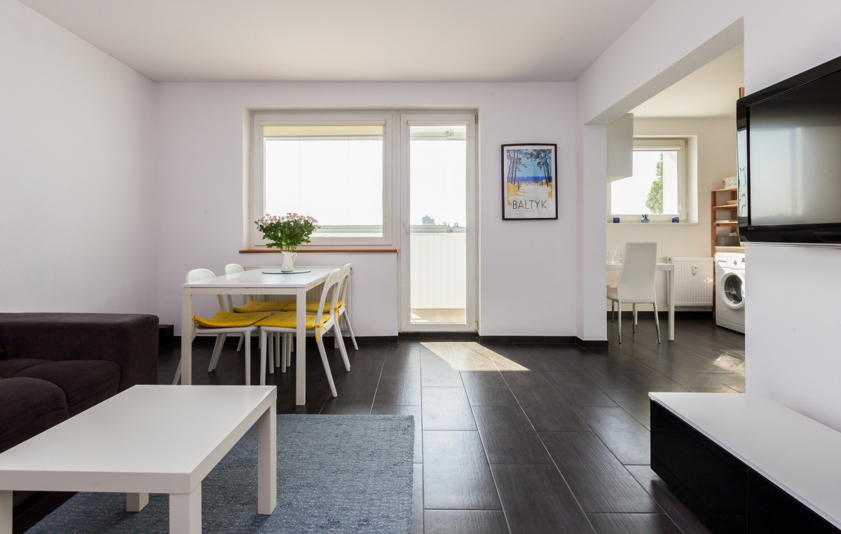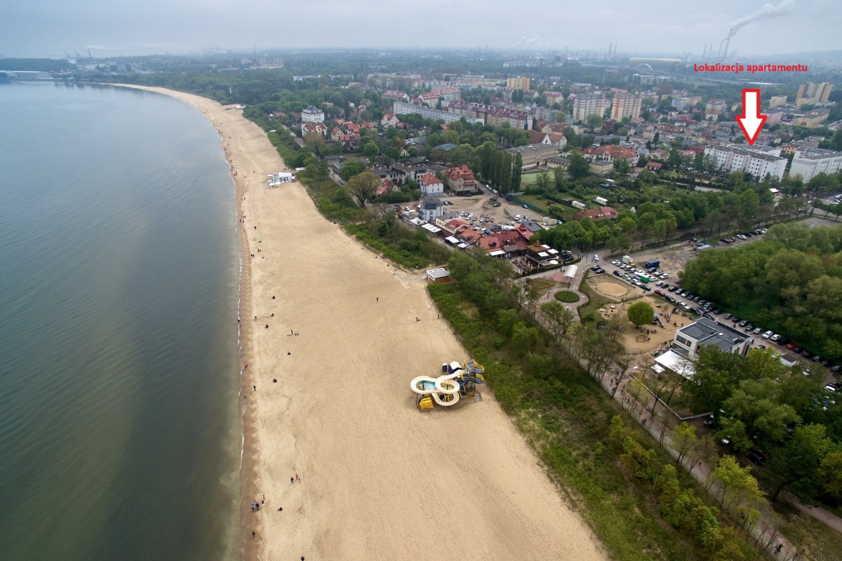 Apartament zlokalizowany w Gdańsku dzielnica Brzeźno przy ul. Hallera 251. Wejście na plaże oddalone jest zaledwie 350m, co zajmuje 5 minut aby dostać się z apartamentu na plaże! Dodatkowo jest to wejście znane turystycznie, przez co znajdują się tu liczne restauracje, bary, lokale gastronomiczne, gofry i lody. W okresie letnim od maja do września tętni tu życie turystyczne, przy czym usytuowanie budynku pośrodku innych bloków zapewnia ciszę w apartamencie. Do mola w Brzeźnie zaledwie 10 minut pieszo. Wzdłuż morza znajduje się deptak, ścieżka rowerowa oraz tereny zielone, a do pięknego i dużego Parku Regana 15 minut spacerem wzdłuż morza. Idąc w drugą stronę w 10 minut dostaniemy się do odrestaurowanego ostatnio domu zdrojowego w Brzeźnie. Za pobliskim blokiem (2 minuty pieszo) znajduje się przystanek tramwajowy, z którego bezpośrednio możemy dojechać do centrum miasta, starówki, Politechniki Gdańskiej, Uniwersytetu Gdańskiego, Akademii Medycznej czy Galerii Bałtyckiej. W bliskiej okolicy znajdują się liczne sklepy żabka, biedronka, lidl, mięsny, kultowy rybny, monopolowy, a także ośrodek zdrowia, apteka jak i przedszkole. Pod blokiem znajduje się plac zabaw dla dzieci.
