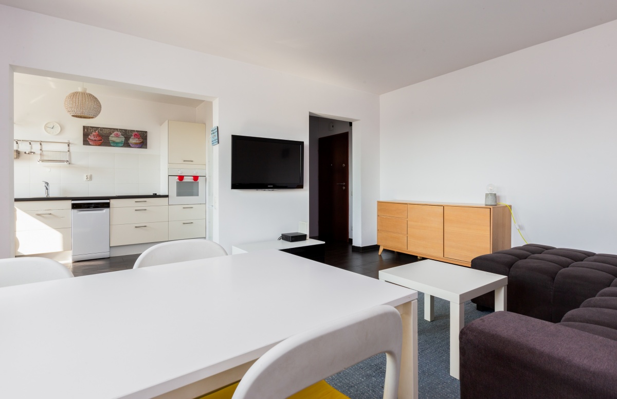 Mieszkanie o powierzchni użytkowej 52m2 wraz komórką lokatorską w piwnicy o powierzchni 6m2. Blok czterokondygnacyjny zbudowany w 1991 roku z odnowioną elewacją oraz odświeżoną klatką schodową w zeszłym roku. Wejście do budynku zabezpieczone domofonem. Lokal znajduję się na trzecim piętrze i składa się z salonu połączonego z kuchnią, sypialni, łazienki, korytarza oraz balkonu. Salon wyposażony w dużą rozkładaną kanapę rogową, stół z kompletem krzeseł, telewizor oraz komodę. W kuchni znajduje się mały stolik, lodówka, zmywarka, kuchenka, piekarnik, mikrofalówka oraz pralka, a także pełne wyposażenie artykułów kuchennych (talerze, kubki, garnki, sztućce itd.) Sypialnia składa się z dużego łózka 180x200cm, szafy oraz komody. Łazienka z prysznicem w zabudowie szklanej. W korytarzu znajduje się duża szafa. Balkon z możliwością zamknięcia za pomocą przesuwnych szyb. Miejsce parkingowe dostępne dla mieszkańców bloku znajdują się za szlabanem otwieranym na pilot. Mieszkanie nie wymaga wkładu finansowego. Możliwość przerobienia mieszkania na trzy pokojowe.