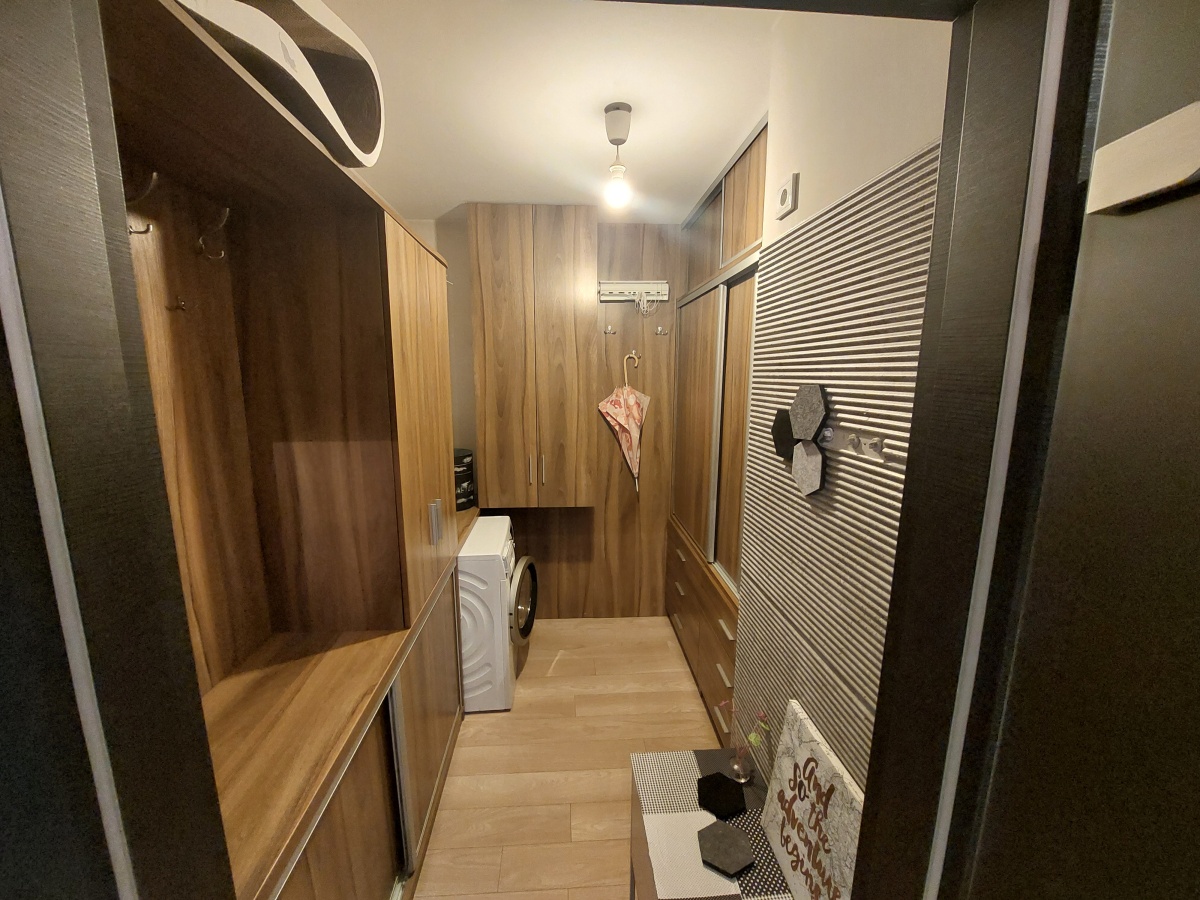 -pomieszczenie gospodarcze o pow. 5,6 m2 / zawiera zabudowę szafkową, pralkę automat /