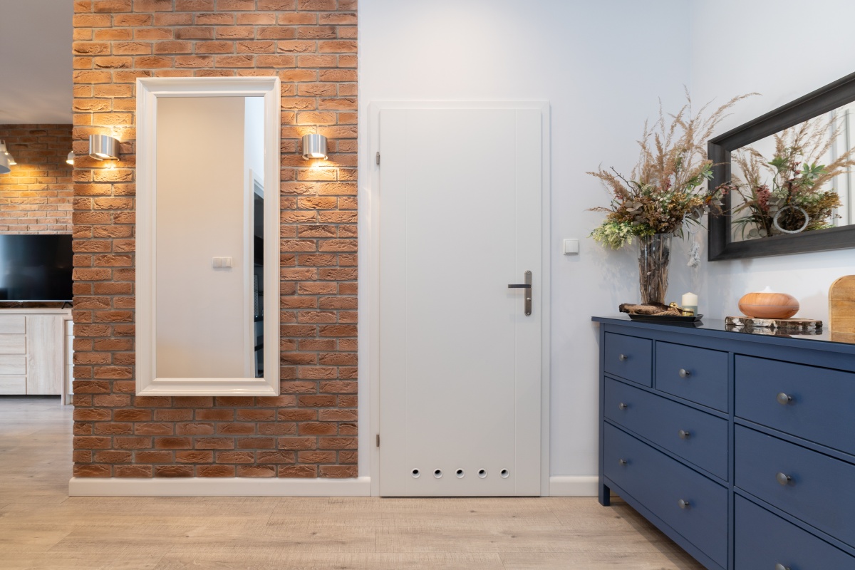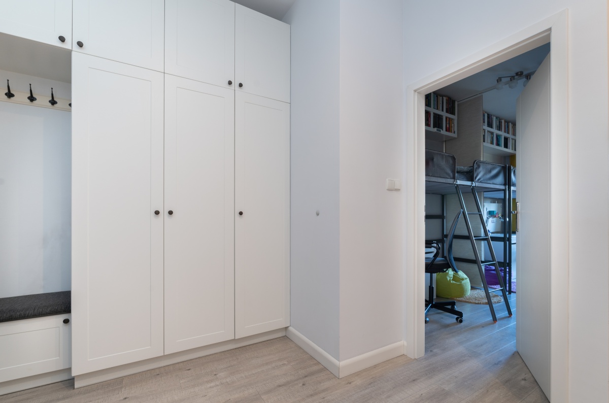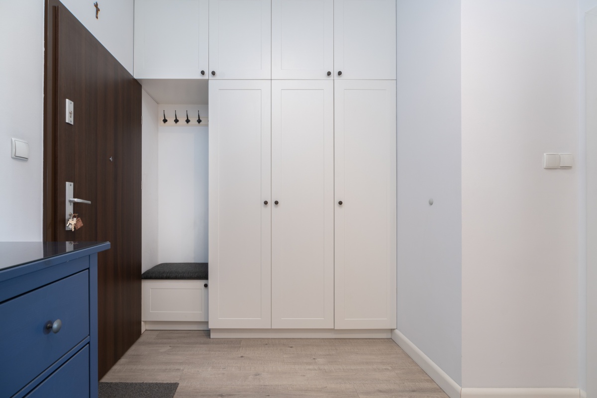-przedpokój (8,99m2), w którym znajduję się pojemna szafa oraz stylowa komoda.