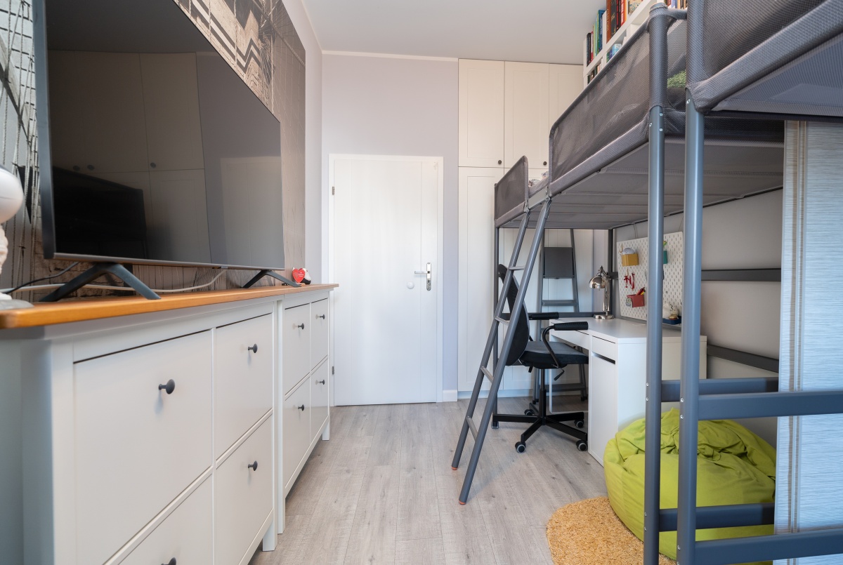 -oddzielna sypialnia (11,57m2), w której znajduję się szafa z zabudowie;
