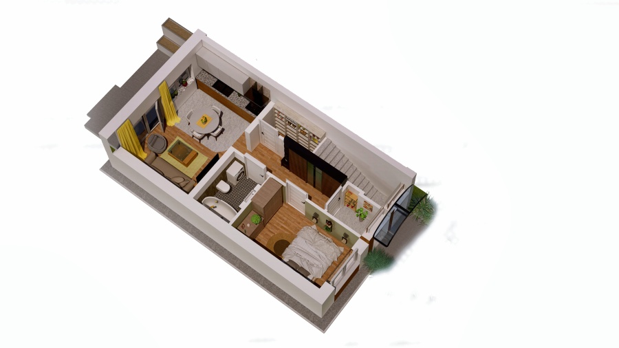 • Taras z ogródkiem, który pozwoli cieszyć się prywatną przestrzenią na świeżym powietrzu.
