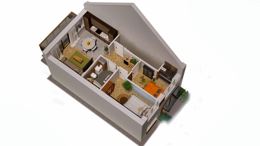 Mieszkanie na poddaszu: 44,20 m2 powierzchni użytkowej.
