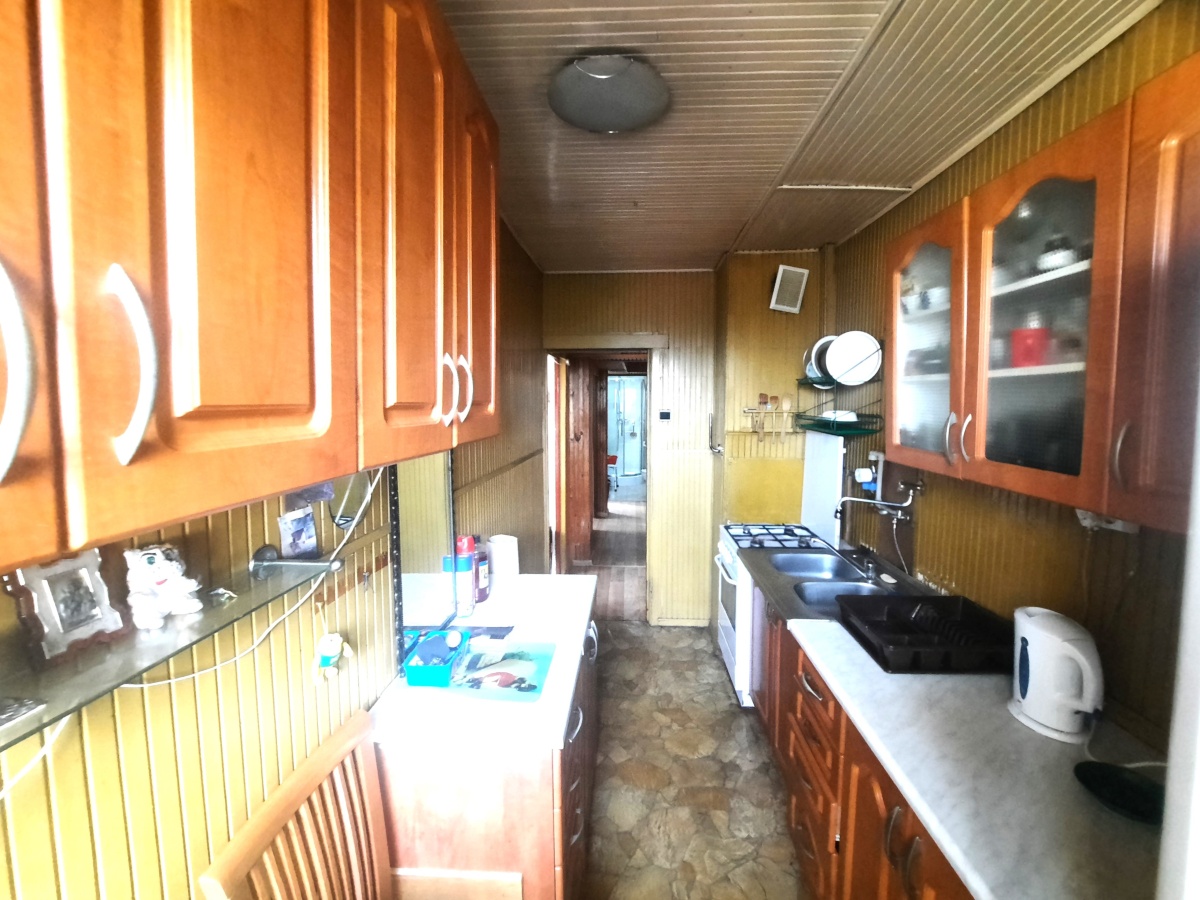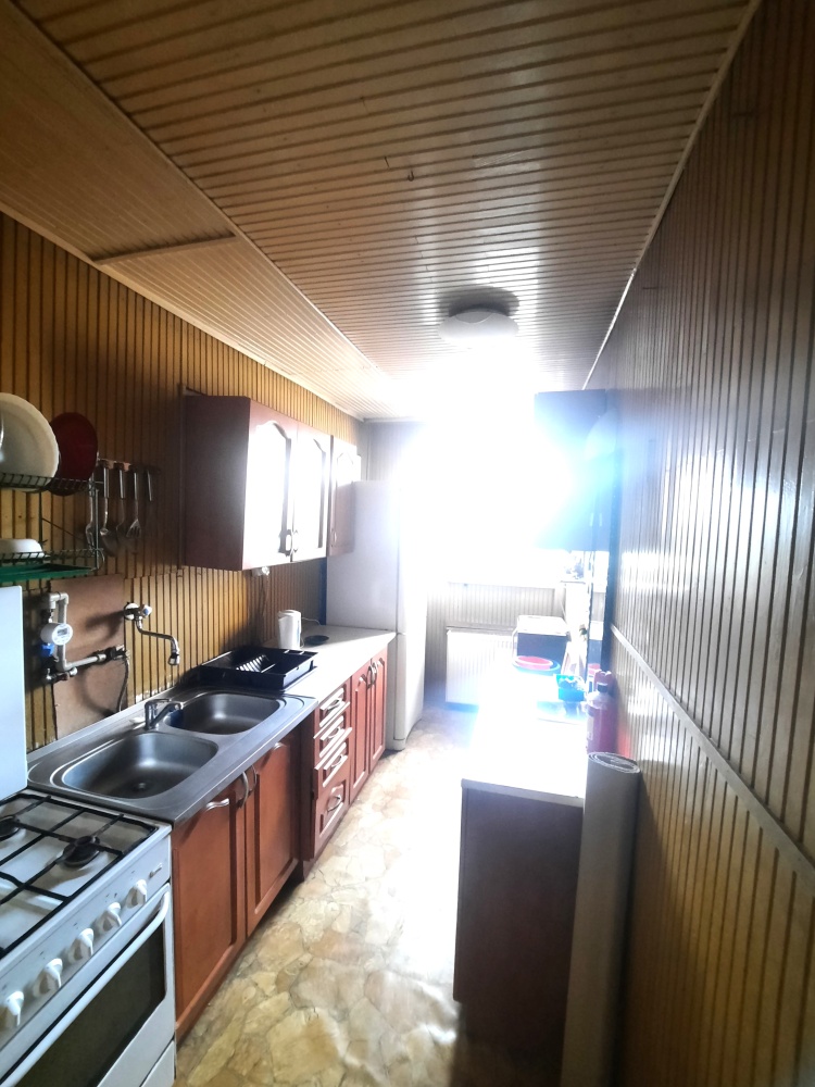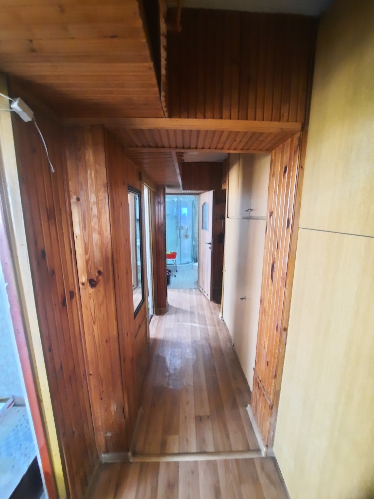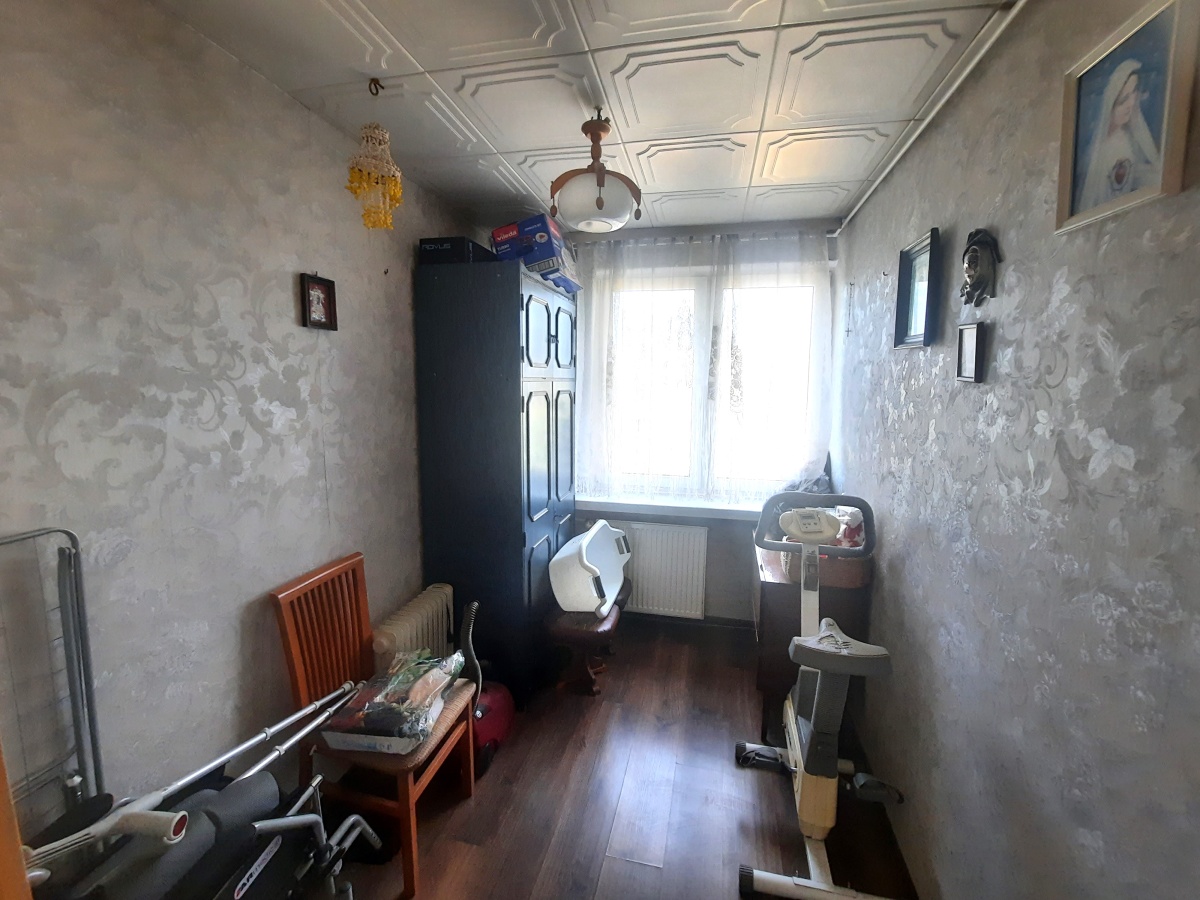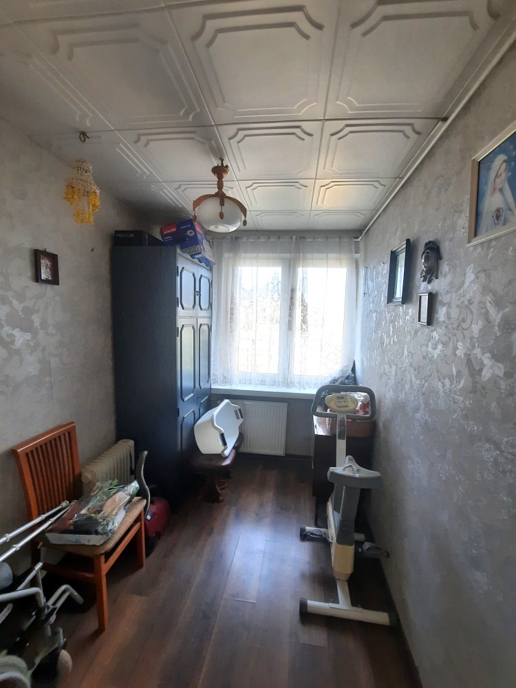 W pokojach, kuchni i przedpokoju na podłogach znajduje się wykładzina PCV, na ścianach tapety a w kuchni i przedpokoju boazeria.
