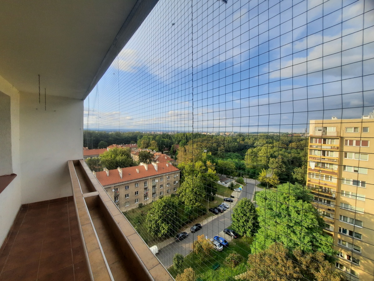 Mieszkanie o powierzchni 49 metrów kwadratowych, na którą składa się duży pokój, dwie sypialnie, kuchnia i łazienka. Z dużego pokoju wyjście na duży balkon z którego rozciąga się wudok na cału Kraków.