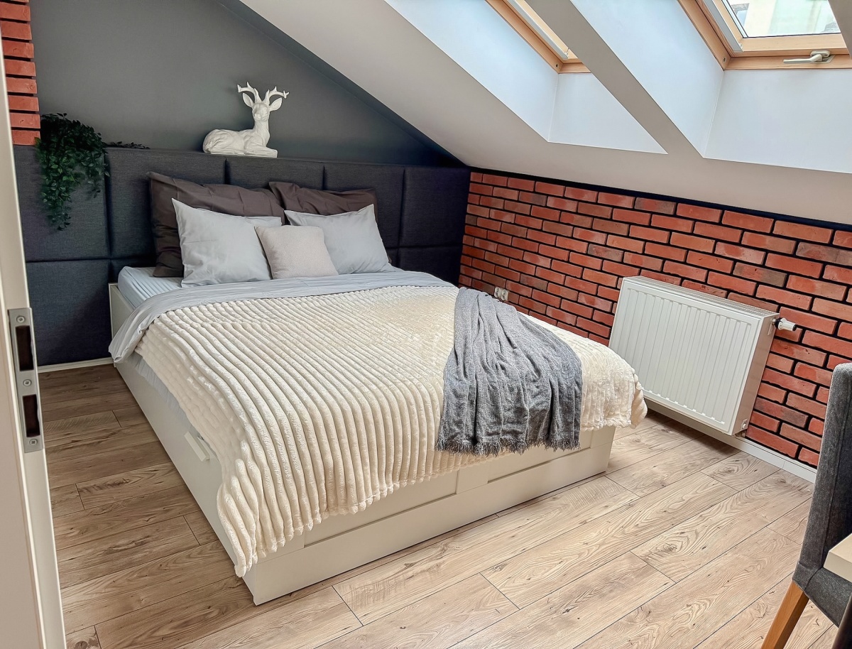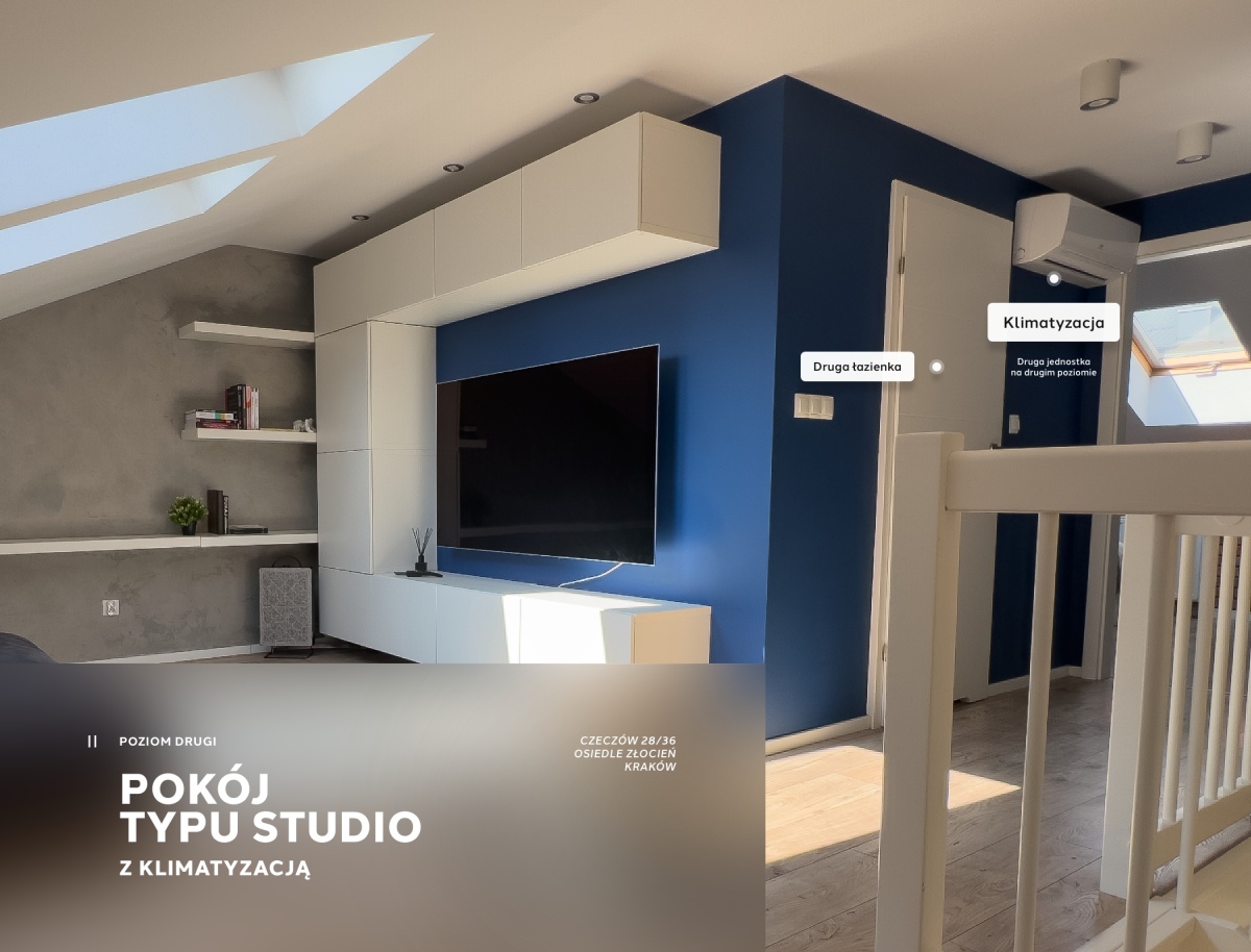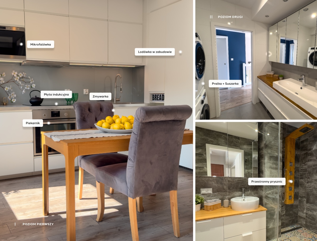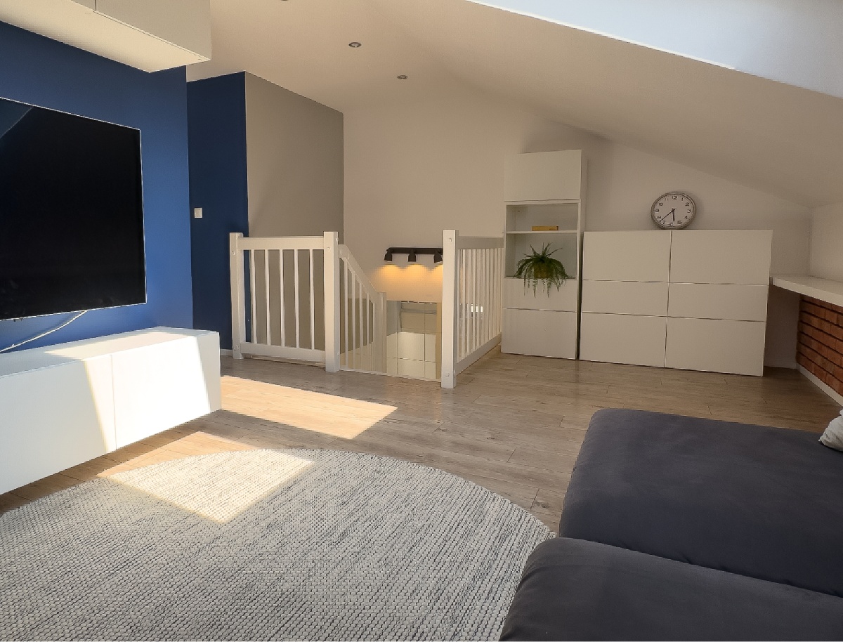 Mieszkanie rozłożone jest na dwóch poziomach, co nadaje mu unikalnego charakteru i funkcjonalności:
