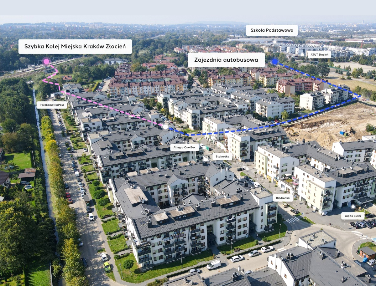 Przystanek kolejki miejskiej - 500 metrów (dojazd do centrum w 15 minut)