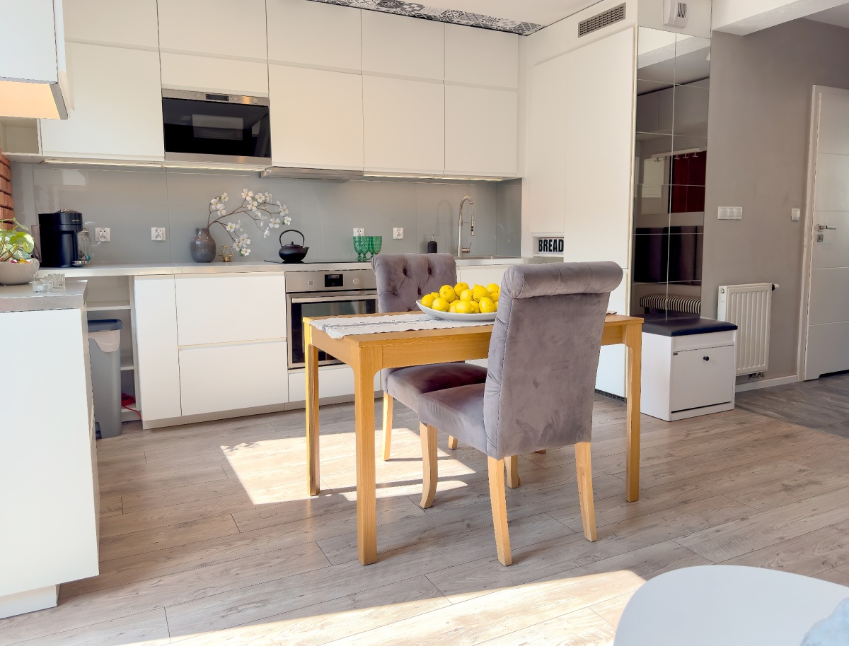 Wyjątkowym atutem mieszkania jest posiadanie dwóch w pełni wyposażonych łazienek. Pierwsza, na parterze, to praktyczna łazienka z nowoczesnym prysznicem, idealna do codziennych porannych rutyn. Druga, na piętrze, to przestronna łazienka z wanną, gdzie można się zrelaksować po długim dniu. Takie rozwiązanie eliminuje kolejki do łazienki w rodzinie, zapewnia prywatność i znacznie podnosi komfort codziennego użytkowania mieszkania.