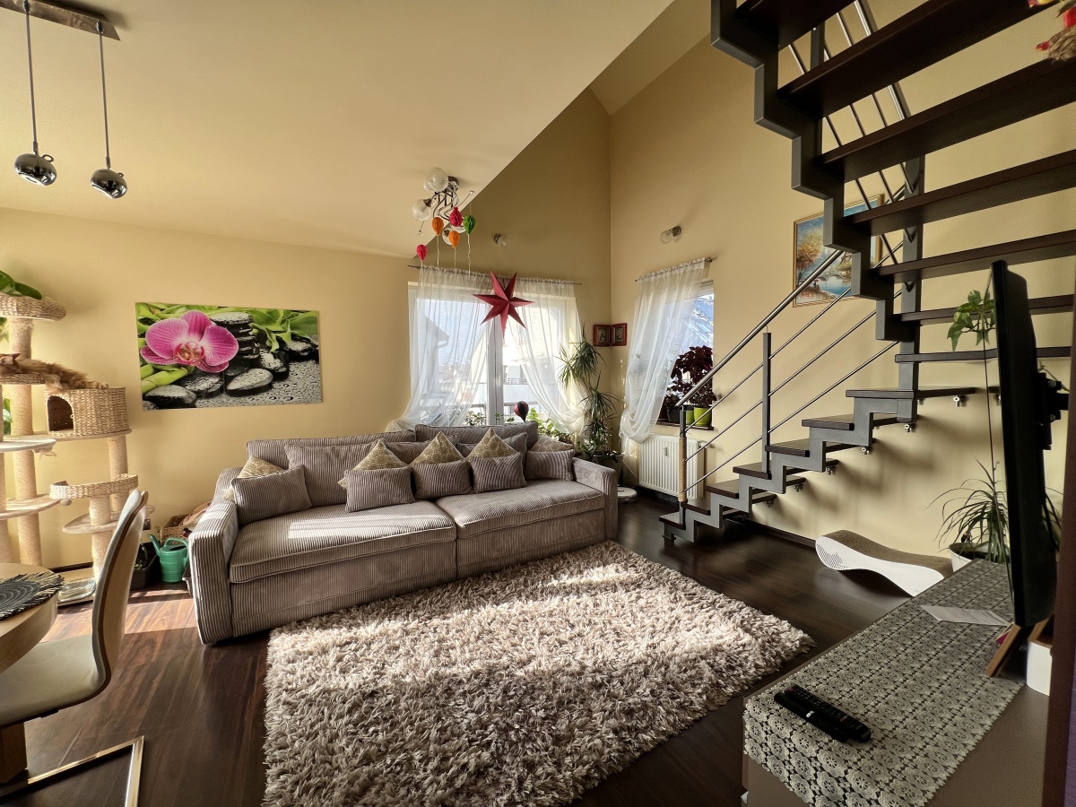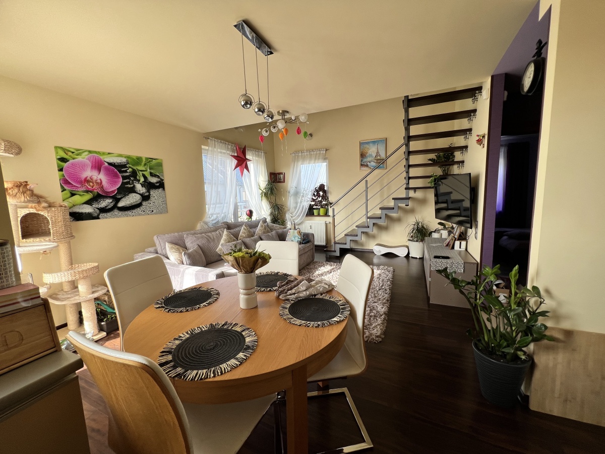 Mieszkanie położone jest na trzecim piętrze i poddaszu w bloku przy ul. Bielskiego w dzielnicy Ponikwoda w Lublinie.