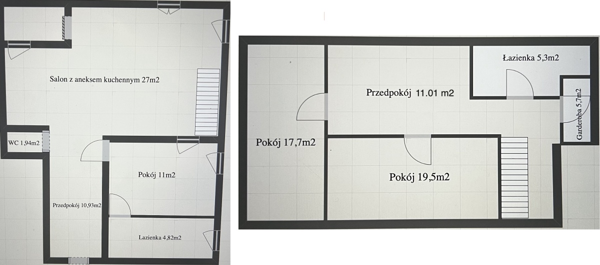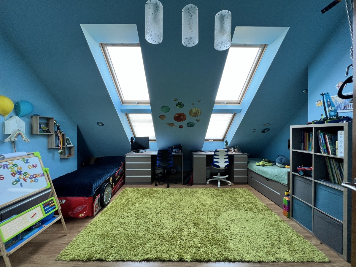 Na drugim piętrze wysokość pomieszczenia w najwyższym punkcie wynosi 3,3 m, co znacznie zwiększa optycznie przestrzeń