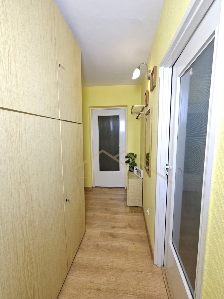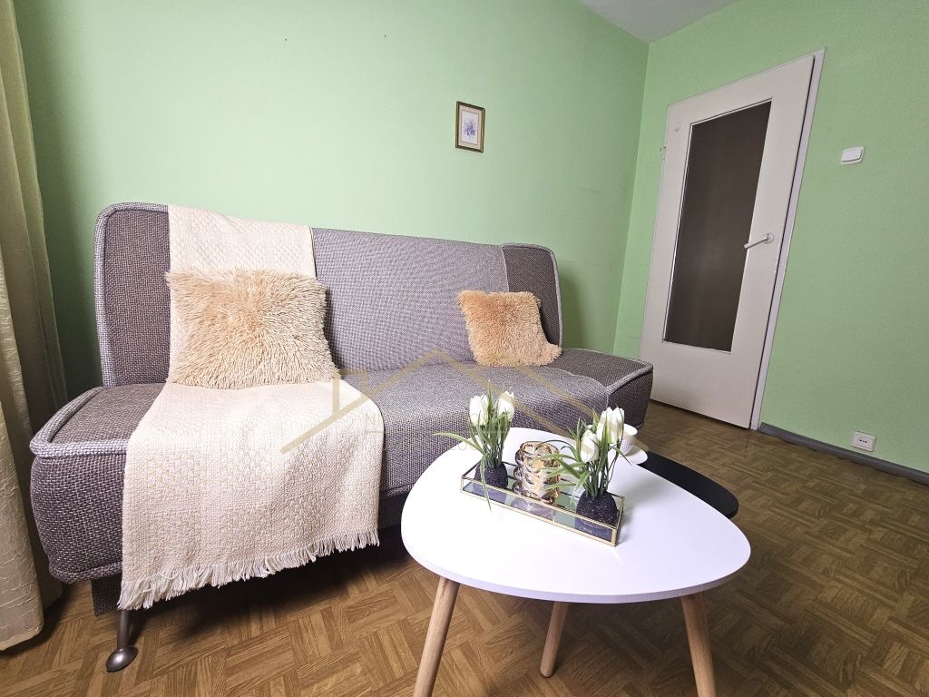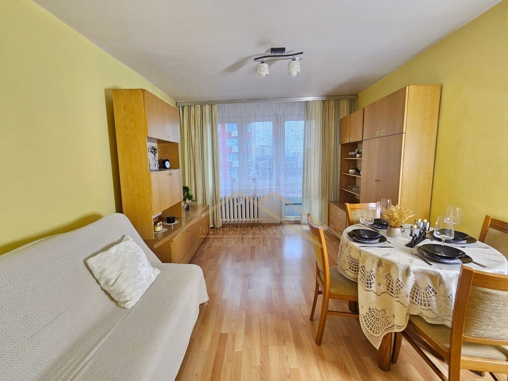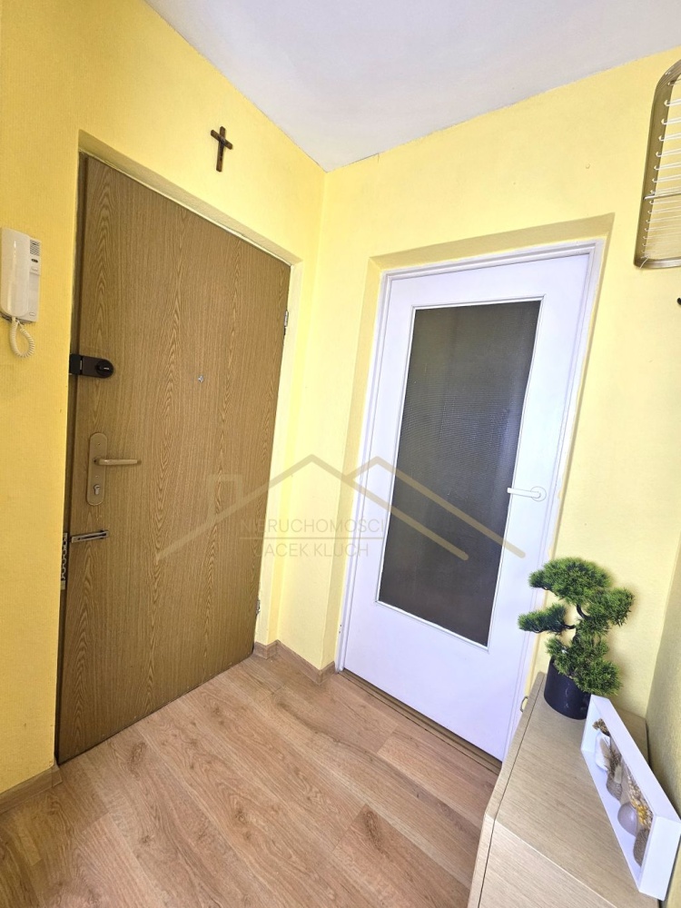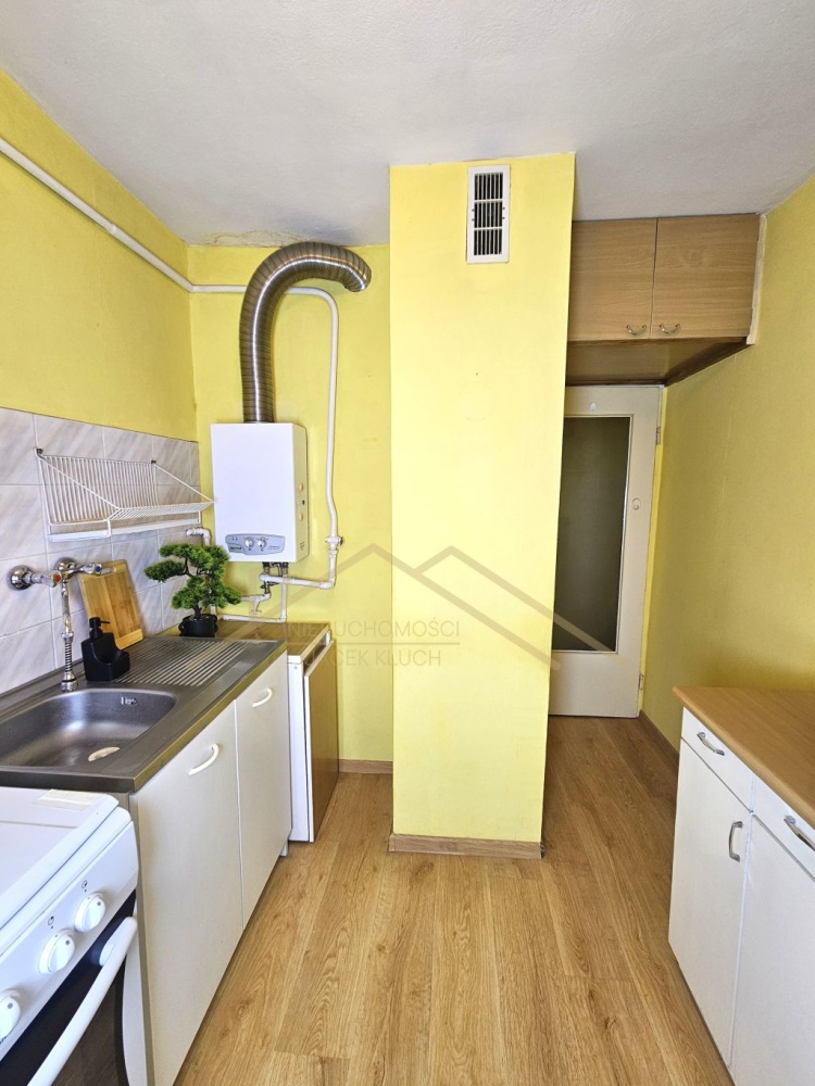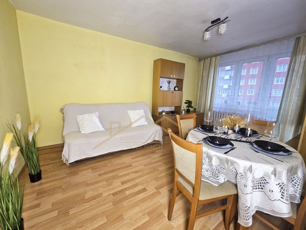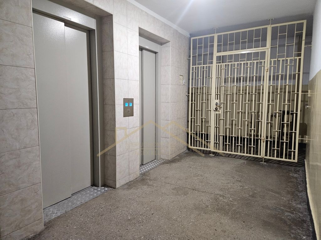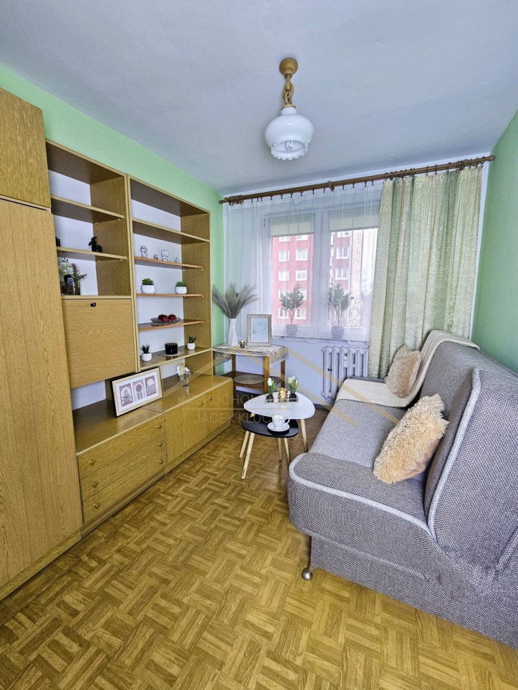Mieszkanie o powierzchni 38,9 m2 znajduję się na piątym piętrze w dziesięciopiętrowym bloku z 1972 roku z dwiema windami.
