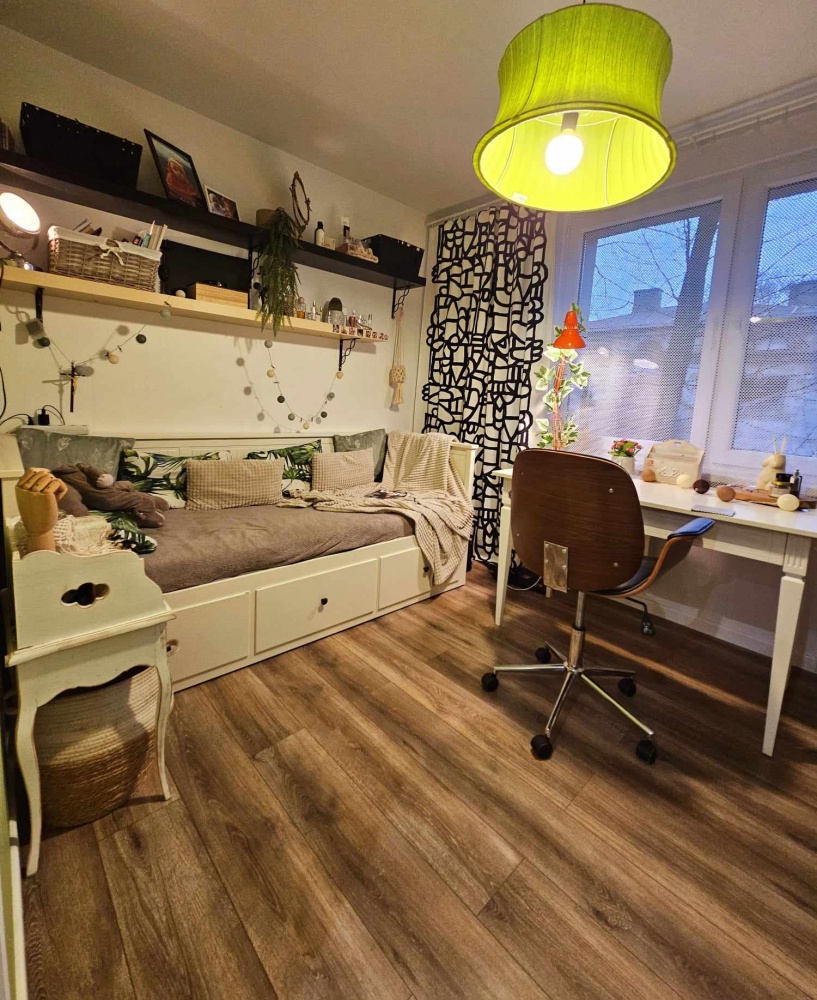 3-pokojowy lokal o powierzchni 63 m2 mieści się na pierwszym piętrze, posiada balkon 6,5 m2 oraz piwnicę 5,3 m2.