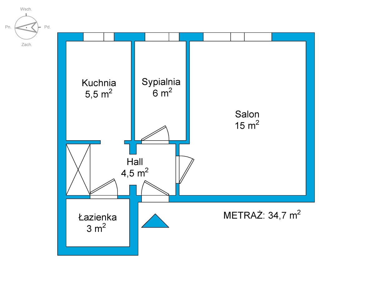 Mieszkanie składa się z (34,7 m2) :