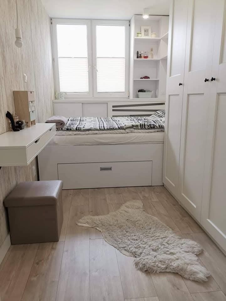 SYPIALNIA: (ok. 8m2) W sypialni znajdują się: duże łóżko w zabudowie o szerokości 1,6 m z pojemną szufladą, dwumetrowa szafa IKEA PAX (bardzo dużo miejsca do przechowywania).