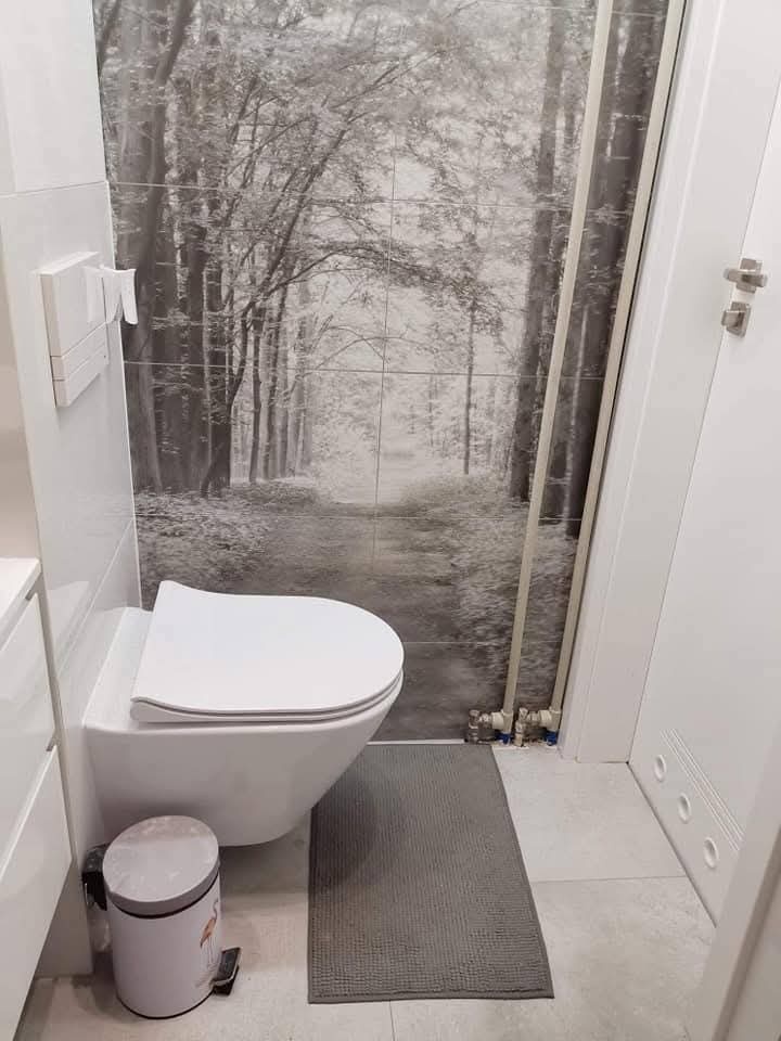 ŁAZIENKA: (ok. 4m2) wyposażona w prysznic z odpływem liniowym, umywalkę, WC oraz pojemne szafki.