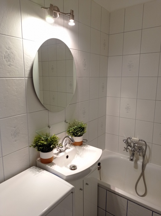 Mieszkanie zostało przearanżowane. Poprzedni układ mieszkania wyglądał następująco; z jednej strony mieszkania była oddzielna kuchnia i pokój, a z drugiej strony duży salon i sypialnia. Z łatwością można powrócić do tego układu. Aktualny układ mieszkania to Salon/jadalnia z aneksem kuchennym, a w drugiej części mieszkania jest przejściowy salon i mała sypialnia/gabinet oraz jeden pokój.