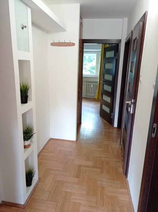 Mieszkanie 2005 roku przeszło generalny remont włącznie z wymianą instalacji. Zostały wymienione okna na drewniane i zamontowane zewnętrzne rolety antywłamaniowe, które również pełnią funkcję izolacji w upalne dni. Na podłogach w całym mieszkaniu jest parkiet dębowy. W przedpokoju i sypialni jest duża szafa wnękowa. Mieszkanie wyposażone jest we wszystkie niezbędne sprzęty takie jak: lodówka, płyta grzewcza, zmywarka oraz pralka.