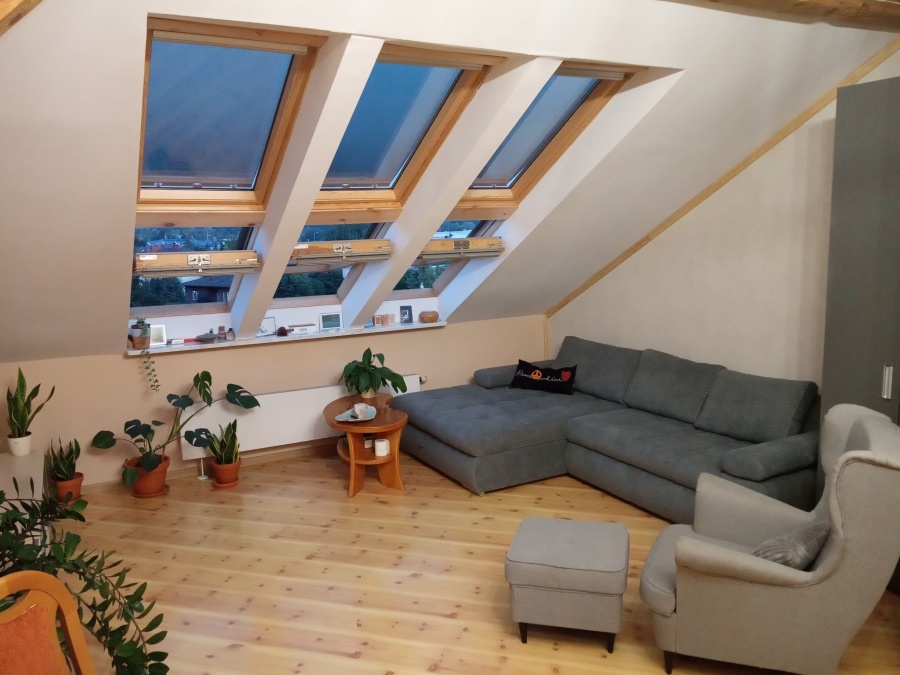 Mieszkanie posiada duży potencjał aranżacyjny i można je urządzić w dowolny sposób. Wysokość mieszkania w najwyższym punkcie dochodzi do 4 m, dzięki czemu istnieje możliwość wydzielenia antresoli. Mieszkanie nie ma balkonu, jest doskonale doświetlone oknami dachowymi (19 sztuk w całym mieszkaniu). Dach 4 lata temu przeszedł termomodernizację i wszystkie okna zostały wymienione na nowe.