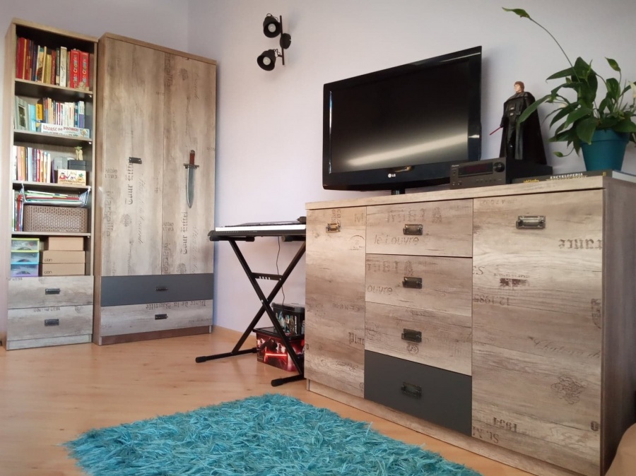 Mieszkanie własnościowe składa się z salonu (18,5 m2), 2 sypialni (8,6 i 10,0 m2), łazienki (4,8 m2), kuchni (6,8m2) oraz przedpokoju (12,6 m2). W przedpokoju znajduje się bardzo pojemna szafa (w miejscu garderoby).