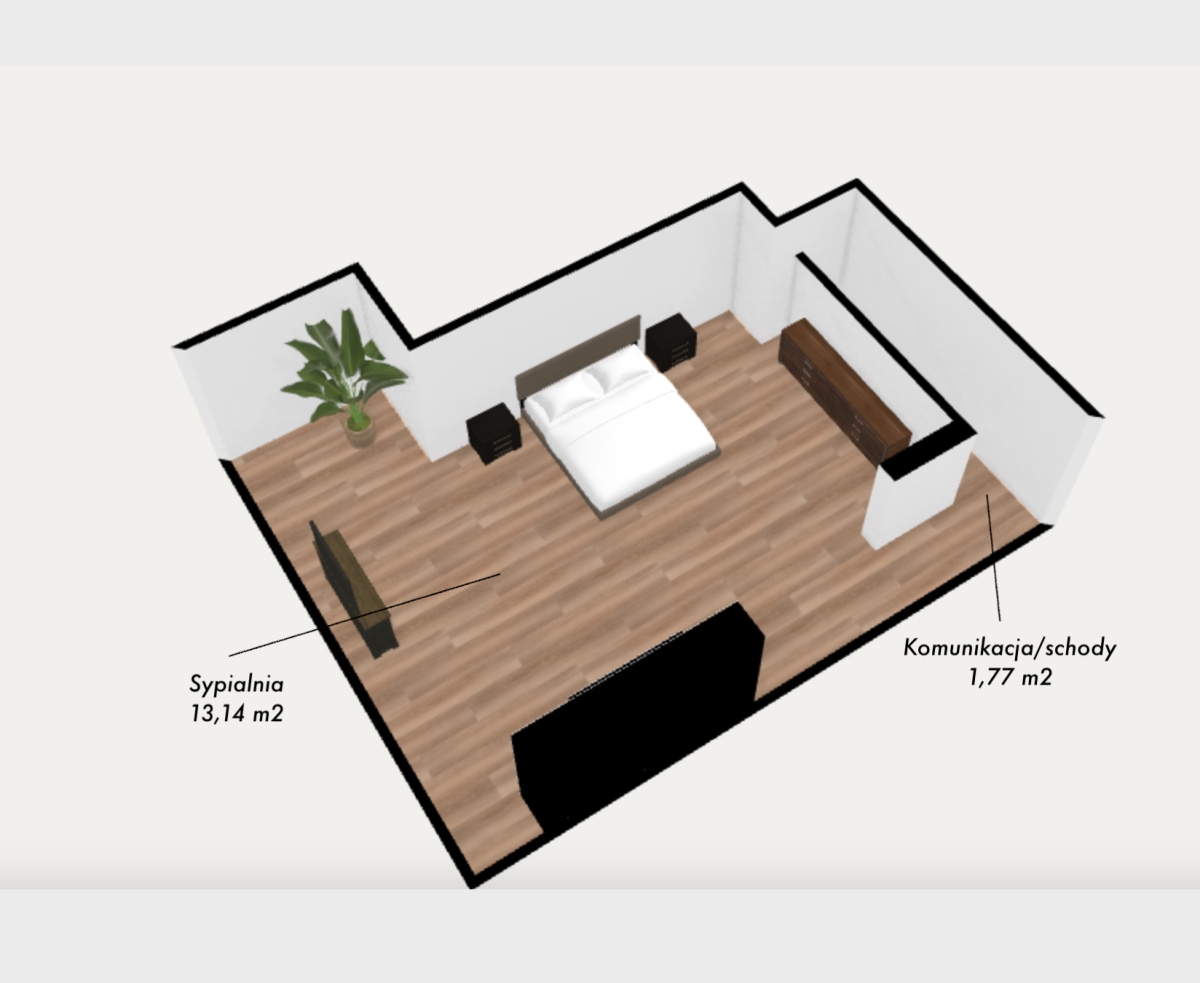 Lokal ma 56m2 powierzchni użytkowej, na którą to składa się :