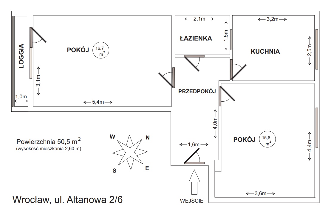 - przedpokoju (ok. 6,4 m2)