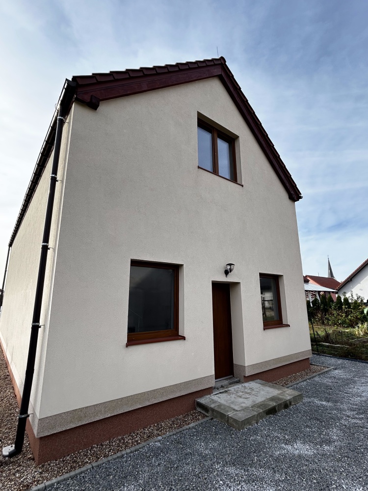 Do wynajęcia przestronne mieszkanie o powierzchni ok. 78 m², położone na pierwszym piętrze nowego budynku jednorodzinnego. Budynek nie jest zamieszkały, właściciel użytkuje jedynie sporadzycznie pomieszczenie garażu na parterze oraz kotłownię w celach obsługowych. Dlatego też wynajmujący nie musi się martwić o prywatność lub ewentualne sąsiedztwo. Ze względu na zamkniętą posesję istnieje możliwość spędzania czasu, zwłaszcza w okresie letnim, na otwartej przestrzeni. Jest to idealna propozycja dla osób poszukujących komfortu, spokoju i prywatności. W pobliżu znajduje się zespół szkolno-przedszkolny, Dino, Dolmed, apteka, las. Miejscowość posiada bezpośrednie połączenie autobusowe z wrocławską Leśnicą (ok.8km), bezpośrednie sąsiedztwo z obwodnicą.