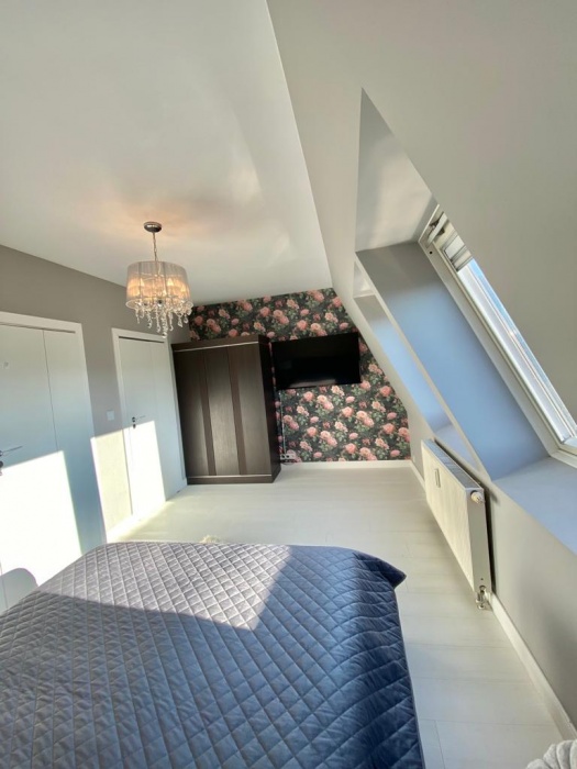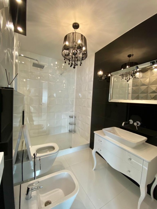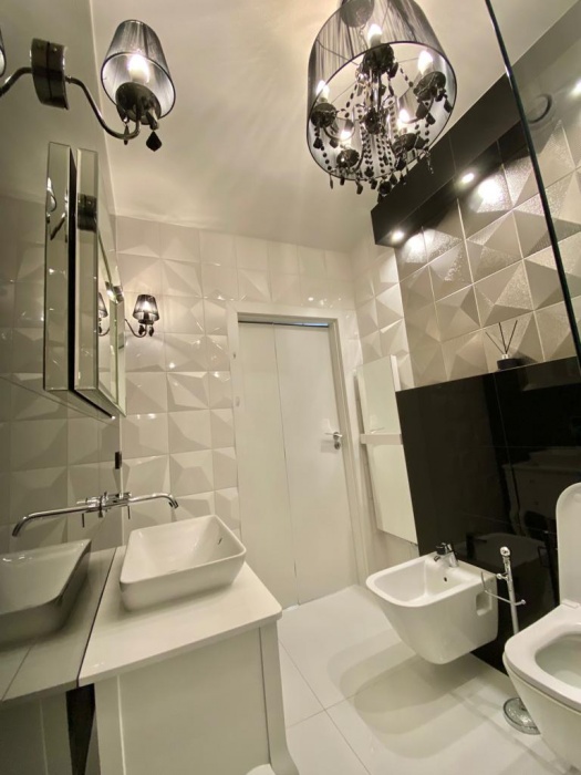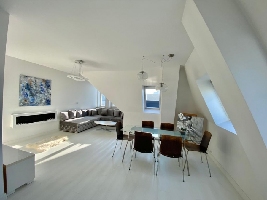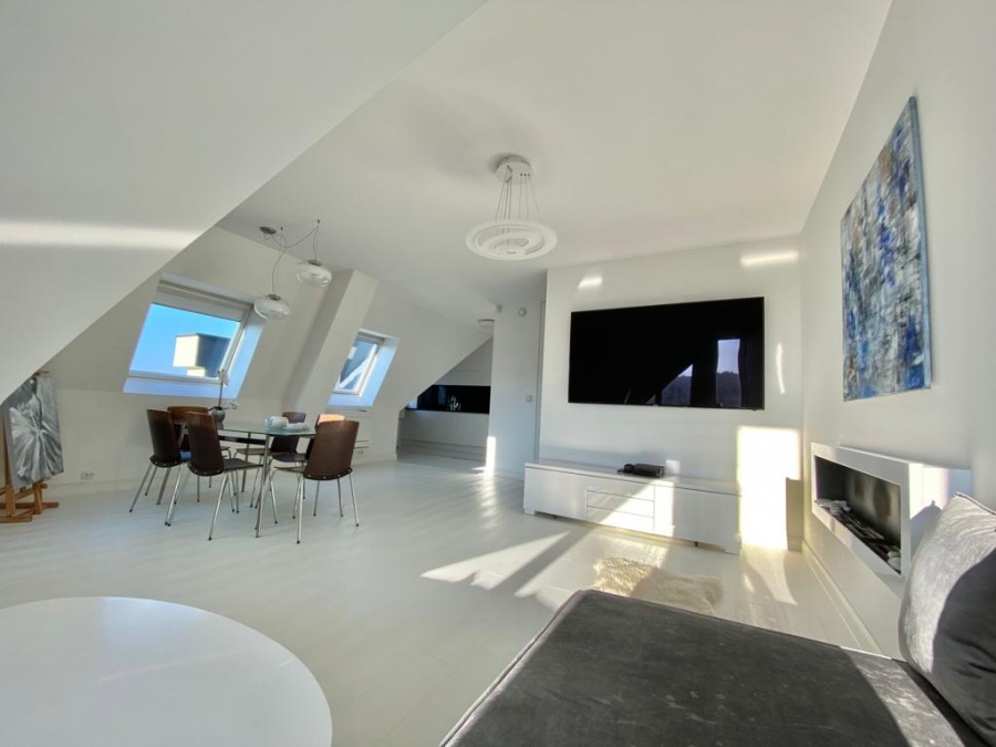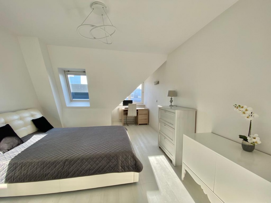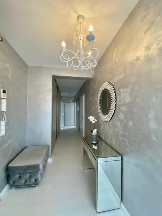 Powierzchnia całkowita - 105m2. Ekskluzywne mieszkanie w stylu „Glamour” z widokiem na panoramę wieżowców Warszawy z ostatniego piętra. Do wykończenia zostały wykorzystanie najwyższej jakości materiały. Dwie łazienki z prysznicami, łazienka w sypialni ma również bidet. Mniejsza łazienka ma sufit z lustra. Dostęp do dużej łazienki i garderoby z głównej sypialni. Nowa klimatyzacja. Duży przestronny salon z biokominkiem oraz dużym 75-cio calowym telewizorem. Drugi telewizor w sypialni. Drzwi w sypialniach akustyczne - z wygłuszeniem. Rolety w oknach typu blackout. Kuchnia w pełni wyposażona m.in. piekarnik dwustrefowy, zmywarka 60cm, płyta indukcyjna, wbudowana mikrofala, lodówka i pralka. Duże granitowe blaty i pojemne szafki. Całodobowy monitoring. Centralny alarm z czujnikami ruchu ze strefami załączania – obecnie podpisana umowa z Konsalnetem. Bardzo słoneczne mieszkanie. Umowa na okres min. 12 miesięcy. Dodatkowe informacje: wymagana kaucja w wysokości miesięcznego czynszu najmu. Koszt prądu i mediów pokrywa najemca – rozliczenia zgodnie ze zużyciem.